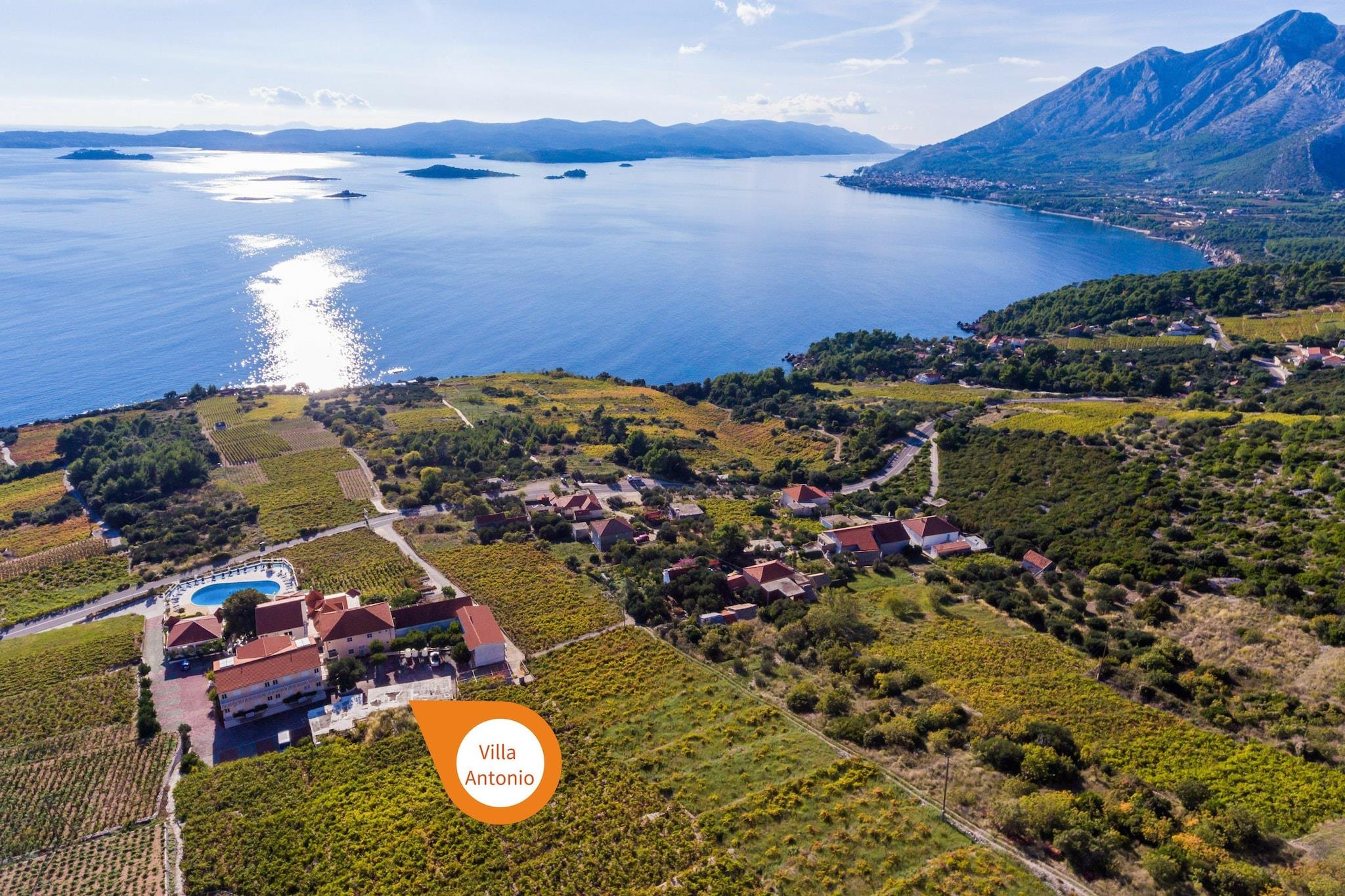 Pansion Villa Antonio ligger tæt på landsbyen Postup i den sydlige del af Peljesac-halvøen. Ejendommen har 35 boligenheder. Gæster er velkomne til at smage de lokale produkter i ejendommens gamle kælder ved ankomsten. Pansion Villa Antonio tilbyder morgenmad (som er inkluderet i prisen) med et bredt udvalg af måltider samt traditionelle måltider fra de lokale område. Til middag kan du vælge mellem få menuer med hjemmelavede produkter og drikkevarer med en ekstra kyst på 18 euro per person per nat. Bagageopbevaring er mulig før check-in og efter check-out, så du kan udforske stedet lidt mere før din afgang. Gratis privat parkering ved siden af er tilgængelig for gæsterne, reservation er ikke påkrævet. Kæledyr er tilladt efter anmodning og tillægsgebyr (5 euro pr. kæledyr pr. dag). Barneseng er tilgængelig efter anmodning og gratis.** *Bemærk venligst, at byskat på 1,60 euro per person, per nat ikke er inkluderet i prisen.***Dette dobbeltværelse med møbleret balkon og havudsigt har en dobbeltseng, gratis WiFi, aircondition, SAT LCD-tv og privat badeværelse m med bruser og hårtørrer. Den nærmeste strand ligger kun 6 minutters gang væk. Kirken Saint Marko er 14 km væk, museum Maritime Orebic kan findes 5, 2 km væk, og klosteret på Badija er 10 km fra Villa. Winery Postup er 1 km væk. Dubrovnik gamle bydel, berømte gamle bymure og promenaden Stradun er 2 timers kørsel fra Villa Antonio. Færgehavnen Orebic ligger 6,7 km fra Villa Antonio, mens færgehavnen Korcula ligger 10,3 km derfra.