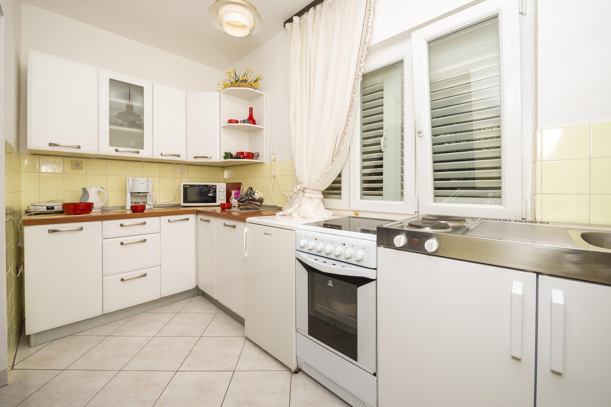 Holiday Home Lido ligger i Orebic, en havneby beliggende på halvøen Pelješac på den dalmatiske kyst. Bagageopbevaring før indtjekning og efter udtjekning er tilgængelig, så du kan udforske stedet lidt mere før afgang. Gratis privat parkering er tilgængelig På stedet. Behagelig plads til 8 personer, vil gæsterne blive udstyret med tre soveværelser. Soveværelserne er udstyret med ekstra store dobbeltsenge, med ekstra sovesofa til to i stuen. Køkkenet er udstyret med ovn, køleskab, vandkedel, mikroovn, komfur, kaffemaskine og brødrister og kommer med spiseplads. Badeværelset er udstyret med en bruser og håndklæder. Gæsterne kan nyde to terrasser udstyret med udendørsmøbler. Barneseng er tilgængelig efter anmodning. Vaskemaskine er til gæsternes rådighed. Ejendommens beliggenhed er perfekt for folk, der elsker at nyde solen og havet. Sina nærmeste stenstrand ligger kun 40 meter væk. Alt nødvendigt, inklusive købmand, apotek, posthus, café, restaurant, hæveautomat maskine turist desk service og mange flere kan findes i byen, på mindre end 200 meter. Den nærmeste lufthavn ligger i Cilipi, som er 125 km. Dubrovniks gamle bydel ligger 107 km fra ejendommen.