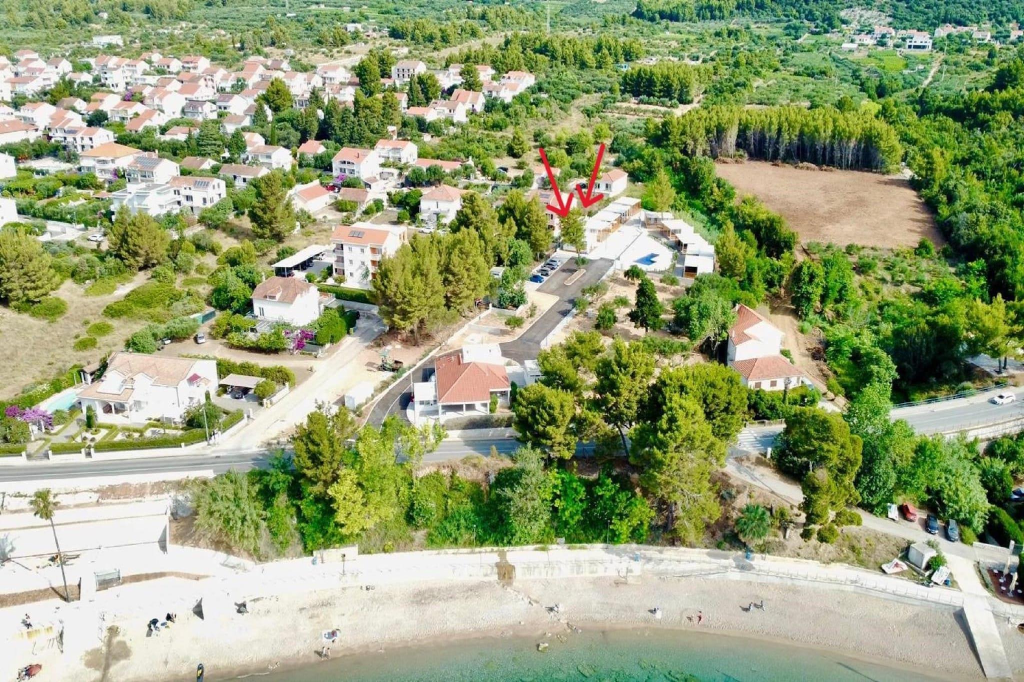 Ground floor: (Living/bed room(double sofa bed), bedroom(2x single bed), bedroom(small double bed), bathroom(toilet, shower), bathroom(toilet, shower)) dining room, Kitchen, Hiking, TV, dining table, stove, seating area, electric kettle, toaster, hood, coffee machine, espresso machine, microwave, dishwasher, fridge, freezer, air conditioning, terrace, sun loungers, BBQ, parking, swimming pool, ironing board, iron, hairdryer