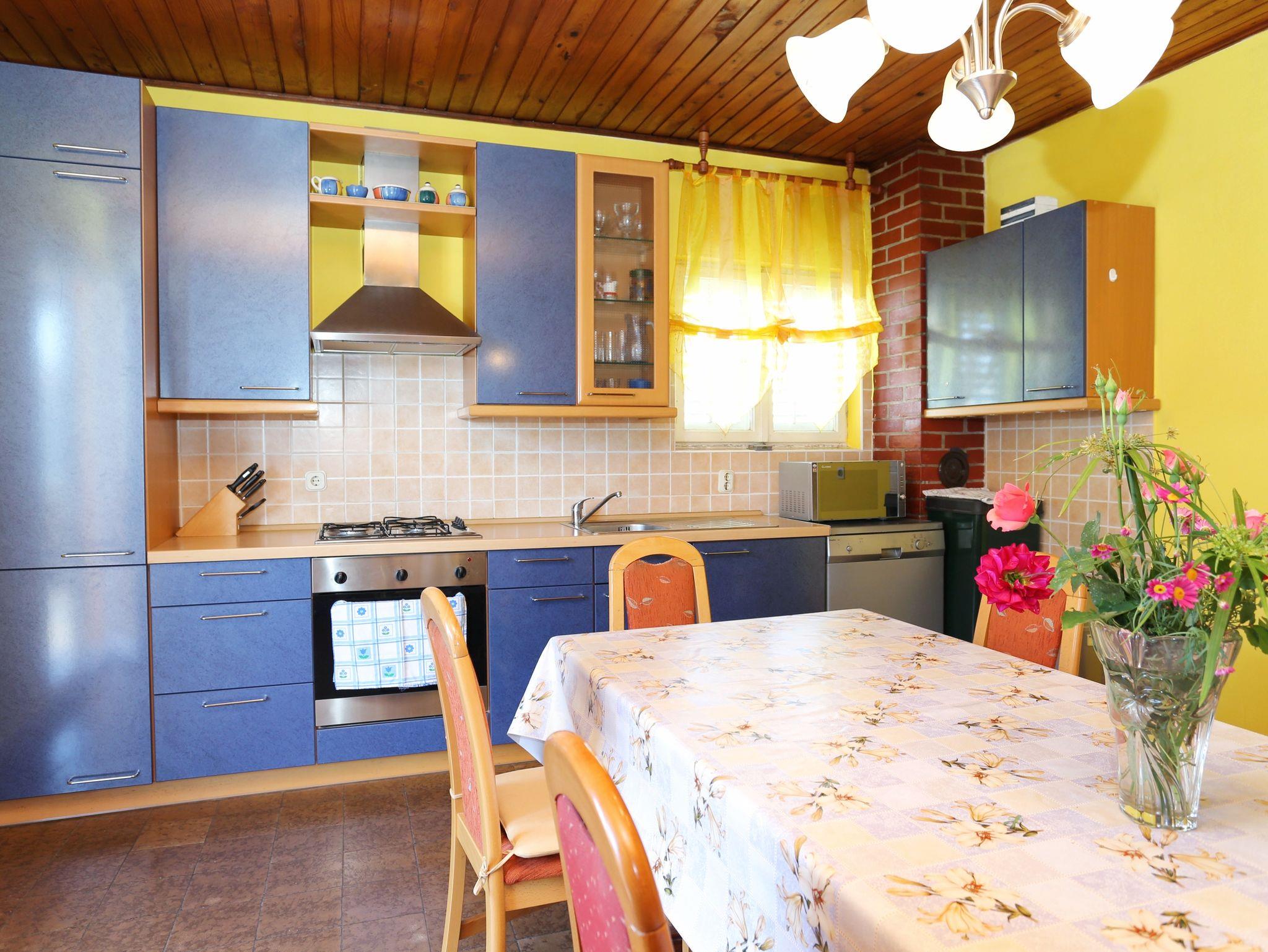 Umgebung des Objekts (Ordentlich), Hof (100m2, Sitzbereich), Parkplatz (Anzahl der Parkplätze: 5, Entfernung vom Objekt: im Hof), Grill: gemeinsam, WiFi Internet, Föhn, Bügeleisen, Bügelbrett, Kinderbett