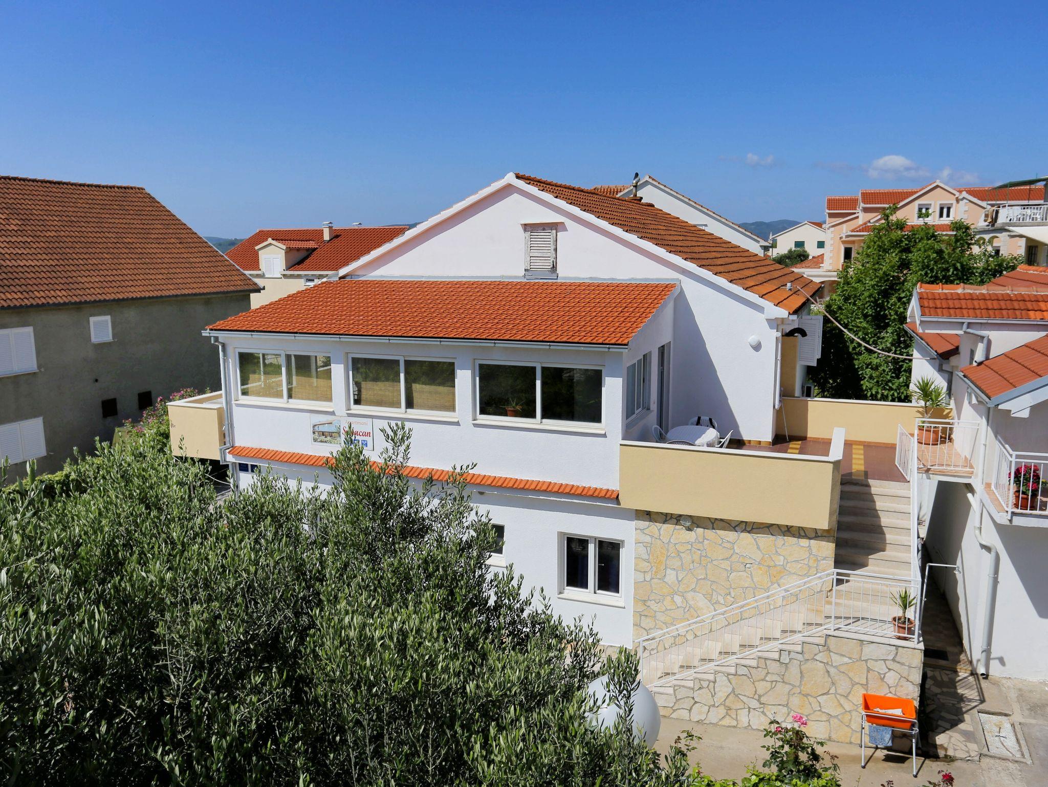 Ferienwohnung bietet Platz für 8 Gäste. Die Betten sind in Schlafzimmern, die es 4 gibt, innerhalb einer Gesamtfläche von 109m2, angeordnet. Die Gäste haben eine eigene Terrasse zur Verfügung, auf der sie in warmen Sommernächten genießen können. Das Apartment bietet Meerblick. Es ist erlaubt, Speisen auf dem Gemeinschafts-Grill vorzubereiten. In der Unterkunftseinheit besteht die Möglichkeit des Mitbringens von Haustieren gegen Aufpreis. IM PREIS INBEGRIFFEN: Kurtaxe, Endreinigung, Klimatisierung, Parkplatz, Internet, Kinderbett, Bügeleisen, Bügelbrett, Föhn. VERBINDLICHE ZUSÄTZLICHE KOSTEN: Aufzahlung für Kurzaufenthalte (prozentualer Zuschlag pro Nächtigungsanzahl: 30% - 1, 20% - 2, 10% - 3). UNVERBINDLICHE ZUSÄTZLICHE KOSTEN: Haustiere (5,00 € pro Nacht). Die Verfügbarkeit zusätzlicher Dienstleistungen in Ihrem reservierten Termin und die Preise derselben (falls nicht aufgeführt) müssen im Voraus überprüft werden. Zusätzliche Dienstleistungen die in der Zahlungsaufforderung nicht aufgeführt sind werden direkt beim Vermieter bezahlt, angenommen der Gast nutzt auch diese.