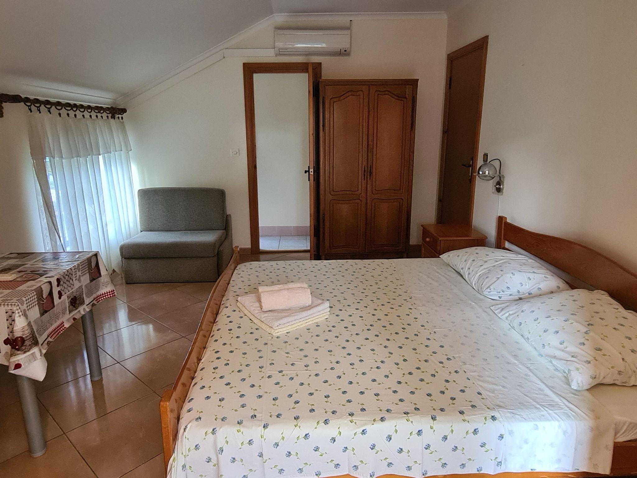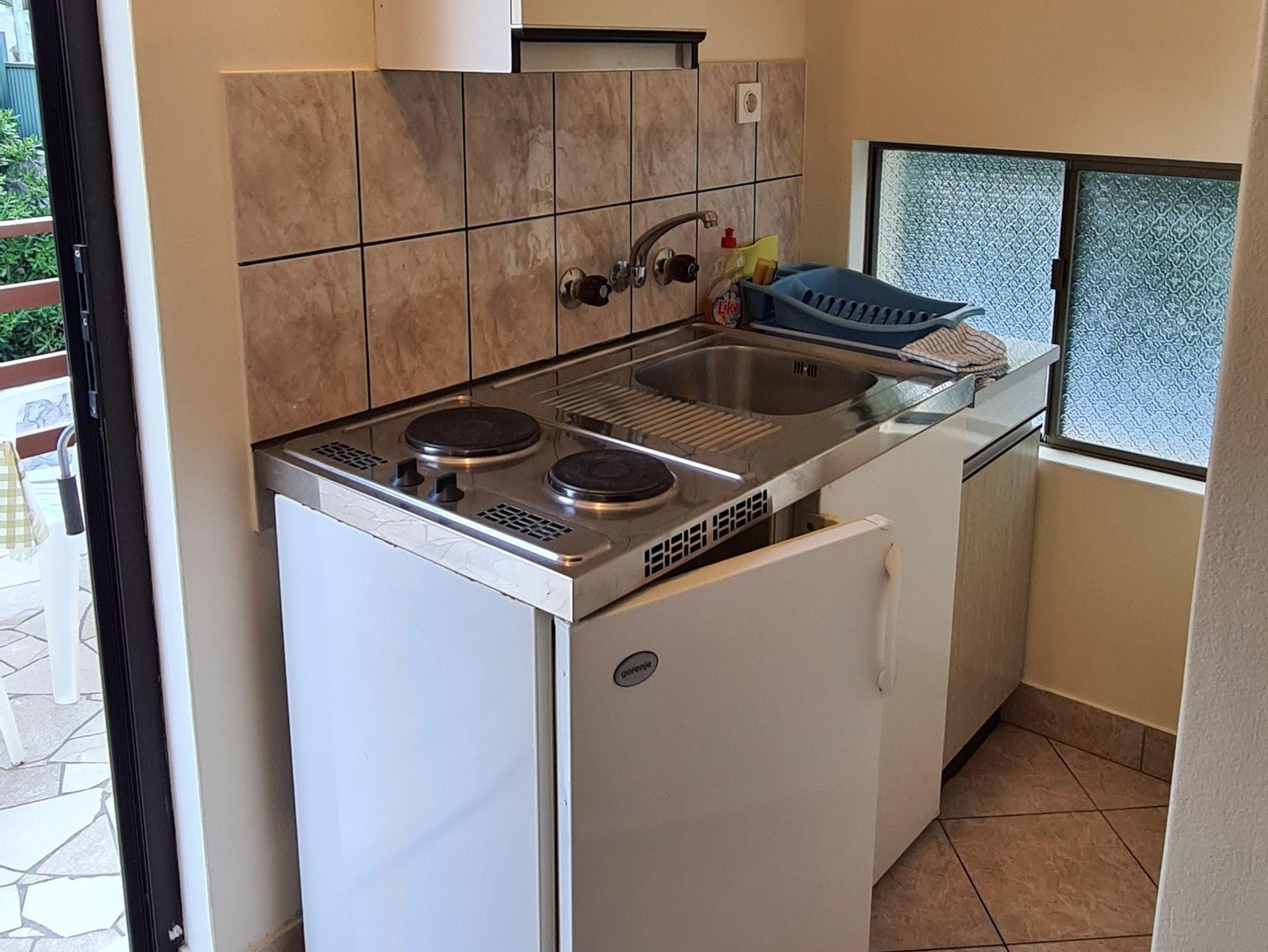 Studio bietet Platz für 3 Gäste. Die Betten sind in Schlafzimmern, die es 1 gibt, innerhalb einer Gesamtfläche von 23m2, angeordnet. Die Gäste haben eine eigene Terrasse zur Verfügung, auf der sie in warmen Sommernächten genießen können. Das Studio-Apartment bietet Meerblick. Es ist erlaubt, Speisen auf dem Gemeinschafts-Grill vorzubereiten. IM PREIS INBEGRIFFEN: Kurtaxe, Endreinigung, Parkplatz, Internet, tragbarer Grill. VERBINDLICHE ZUSÄTZLICHE KOSTEN: Aufzahlung für Kurzaufenthalte (prozentualer Zuschlag pro Nächtigungsanzahl: 30% - 1, 20% - 2, 10% - 3). UNVERBINDLICHE ZUSÄTZLICHE KOSTEN: Klimatisierung (9,00 € pro Nacht), Bootsanlegeplatz (10,00 € pro Nacht). Die Verfügbarkeit zusätzlicher Dienstleistungen in Ihrem reservierten Termin und die Preise derselben (falls nicht aufgeführt) müssen im Voraus überprüft werden. Zusätzliche Dienstleistungen die in der Zahlungsaufforderung nicht aufgeführt sind werden direkt beim Vermieter bezahlt, angenommen der Gast nutzt auch diese.
