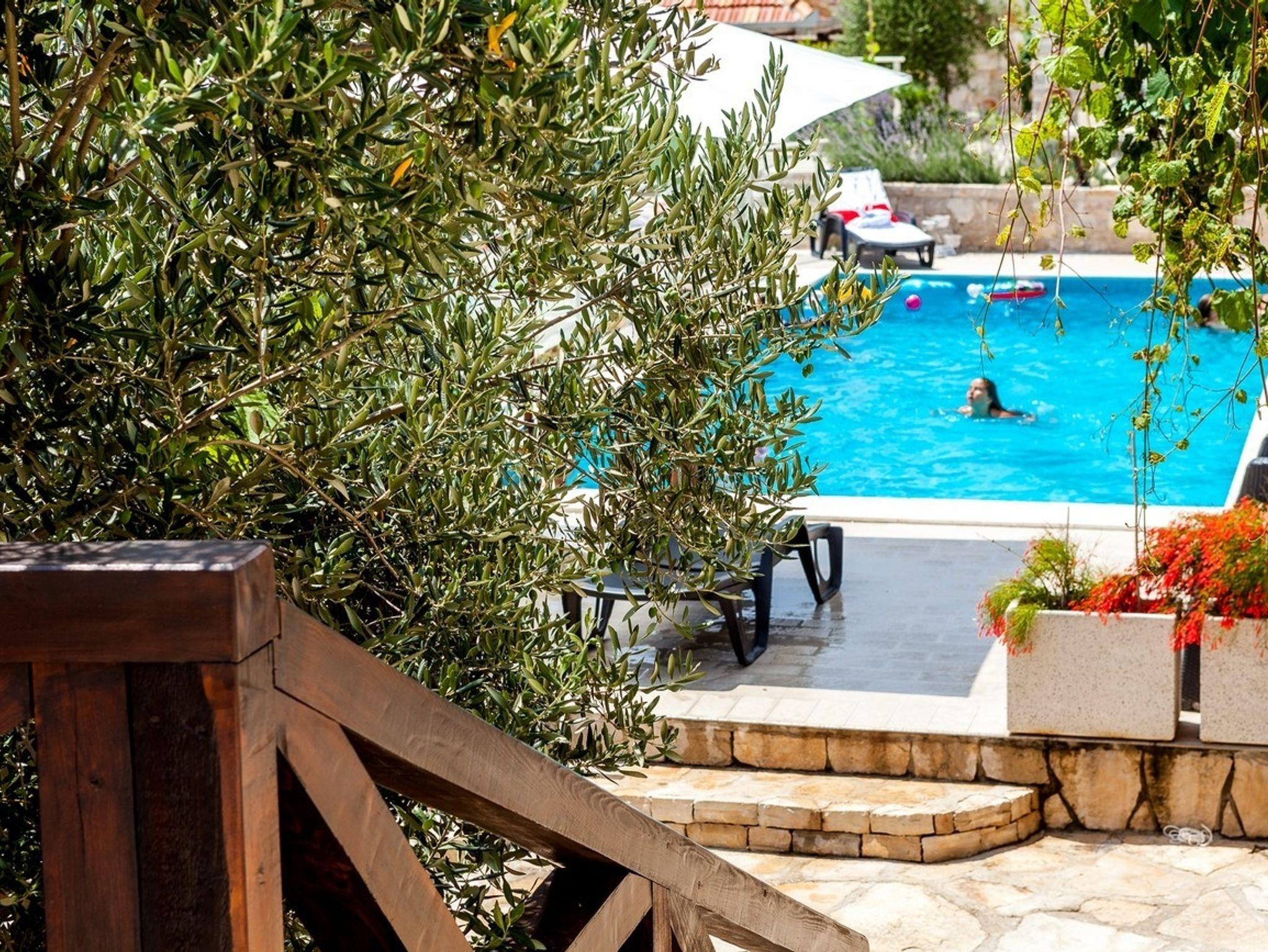 Hof (80m2, Kinderbereich, Sitzbereich), Parkplatz (Anzahl der Parkplätze: 6, Entfernung vom Objekt: im Hof), Pool: gemeinsam, Dimensionen: 10m x 4m x 1.6m, Wassertyp: Süßwasser, Grill: gemeinsam, WiFi Internet, Föhn, Bügeleisen, Bügelbrett, Sonnenschirm, Liegestühle, Kinderbett