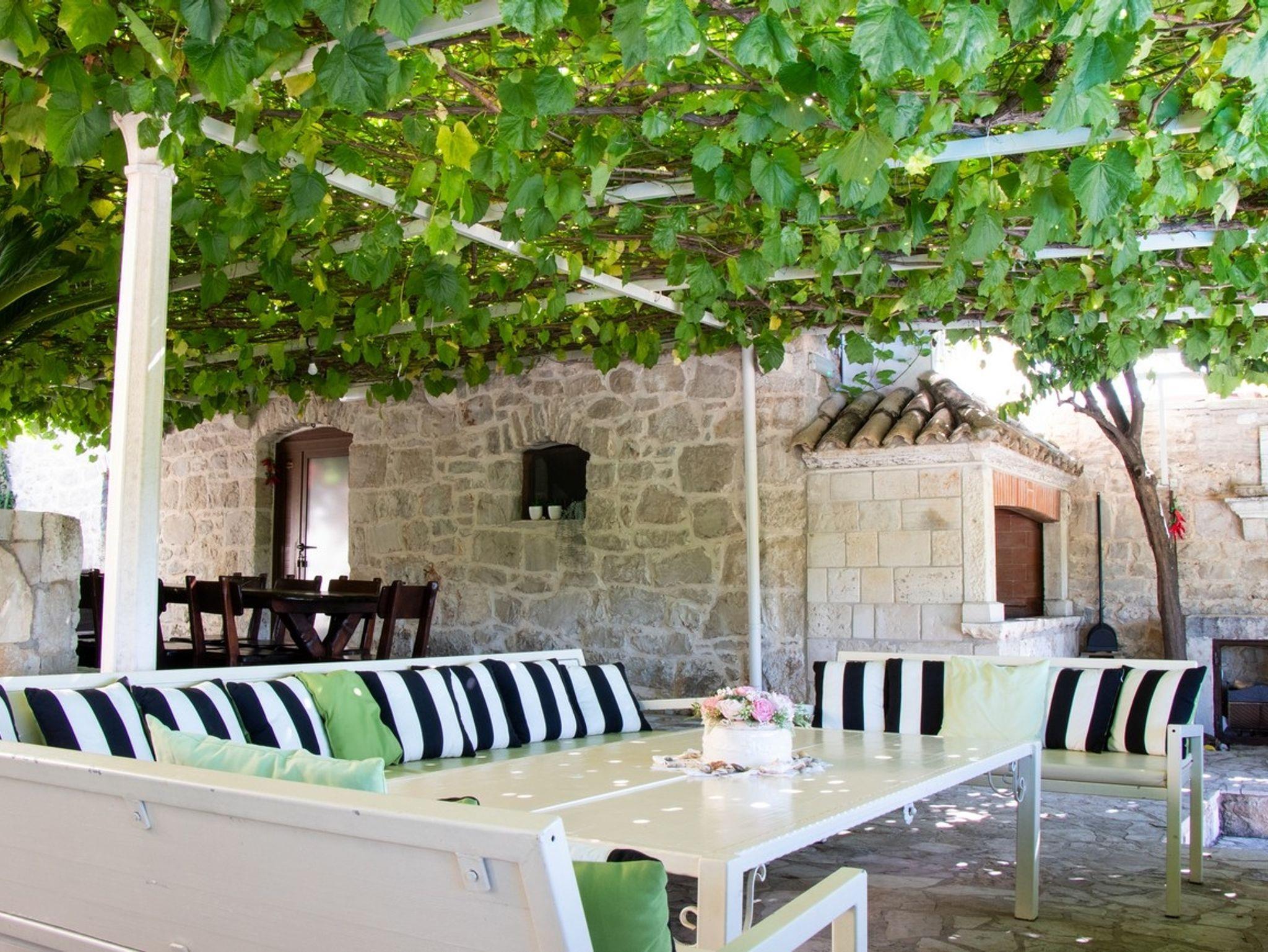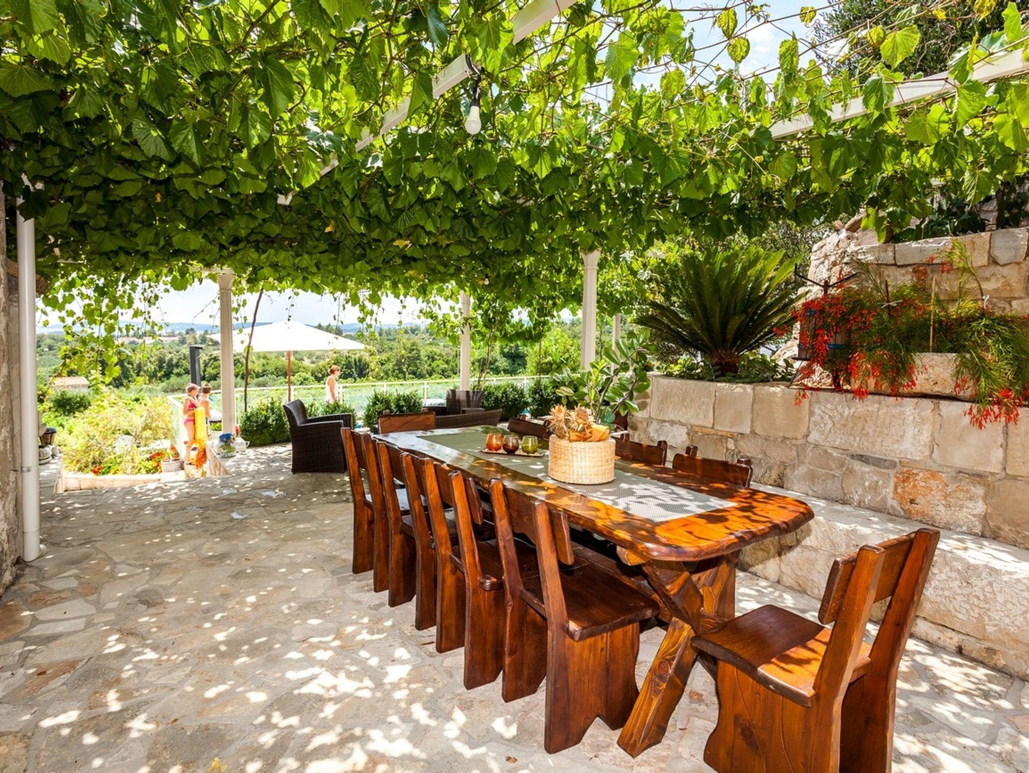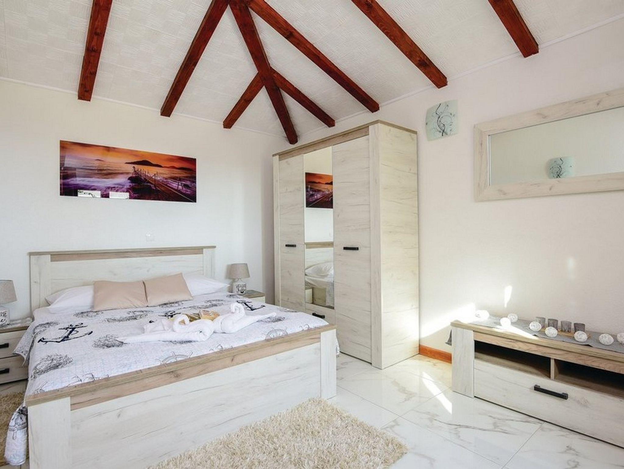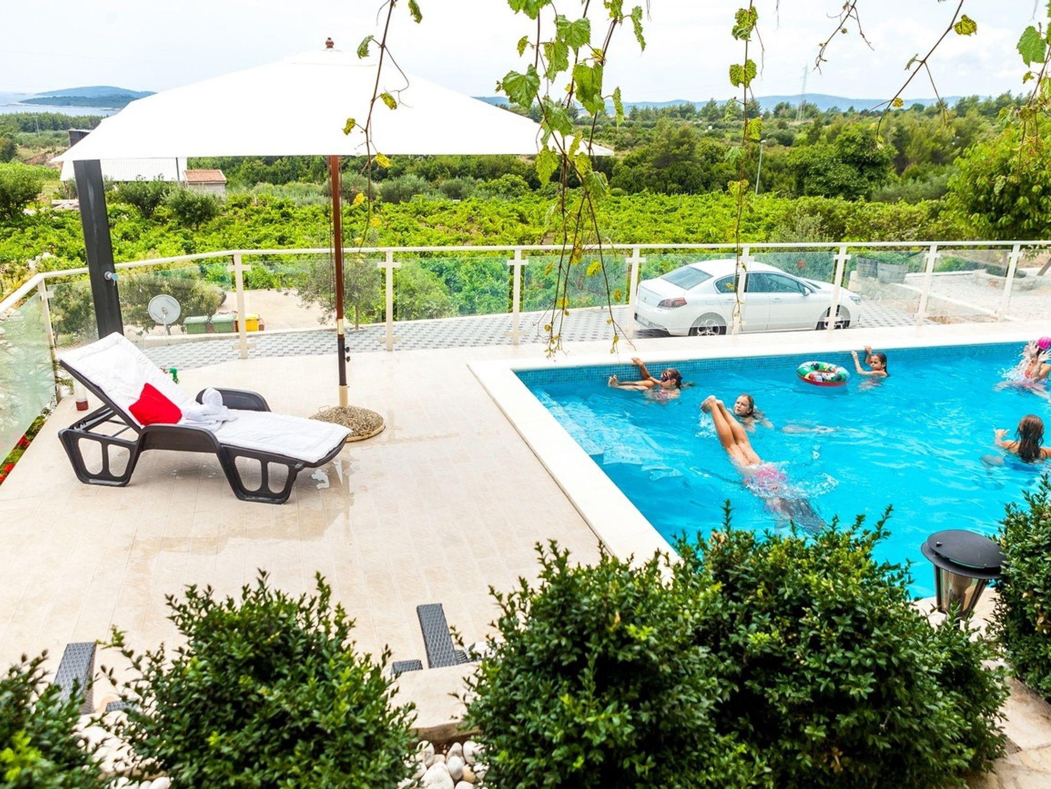 Haus bietet Platz für 14 Gäste. Die Betten sind in Schlafzimmern, die es 7 gibt, innerhalb einer Gesamtfläche von 329m2, angeordnet. Die Gäste haben eine eigene Terrasse zur Verfügung, auf der sie in warmen Sommernächten genießen können. Das Haus bietet Meerblick. Es ist erlaubt, Speisen auf dem Gemeinschafts-Grill vorzubereiten. Während ihres Aufenthalts können Gäste das gemeinsam zur Nutzung stehende Schwimmbad benutzen. Räume der gebuchten Unterkunftseinheit werden nicht in eine Ganze verbunden. IM PREIS INBEGRIFFEN: Kurtaxe, Endreinigung, Klimatisierung, Pool, Parkplatz, Internet, Kinderbett, Bügeleisen, Bügelbrett, Föhn, Sonnenschirm, Liegestühle. Die Verfügbarkeit zusätzlicher Dienstleistungen in Ihrem reservierten Termin und die Preise derselben (falls nicht aufgeführt) müssen im Voraus überprüft werden. Zusätzliche Dienstleistungen die in der Zahlungsaufforderung nicht aufgeführt sind werden direkt beim Vermieter bezahlt, angenommen der Gast nutzt auch diese.