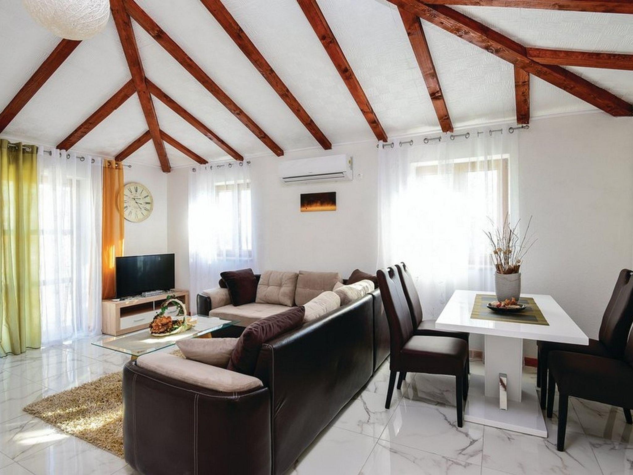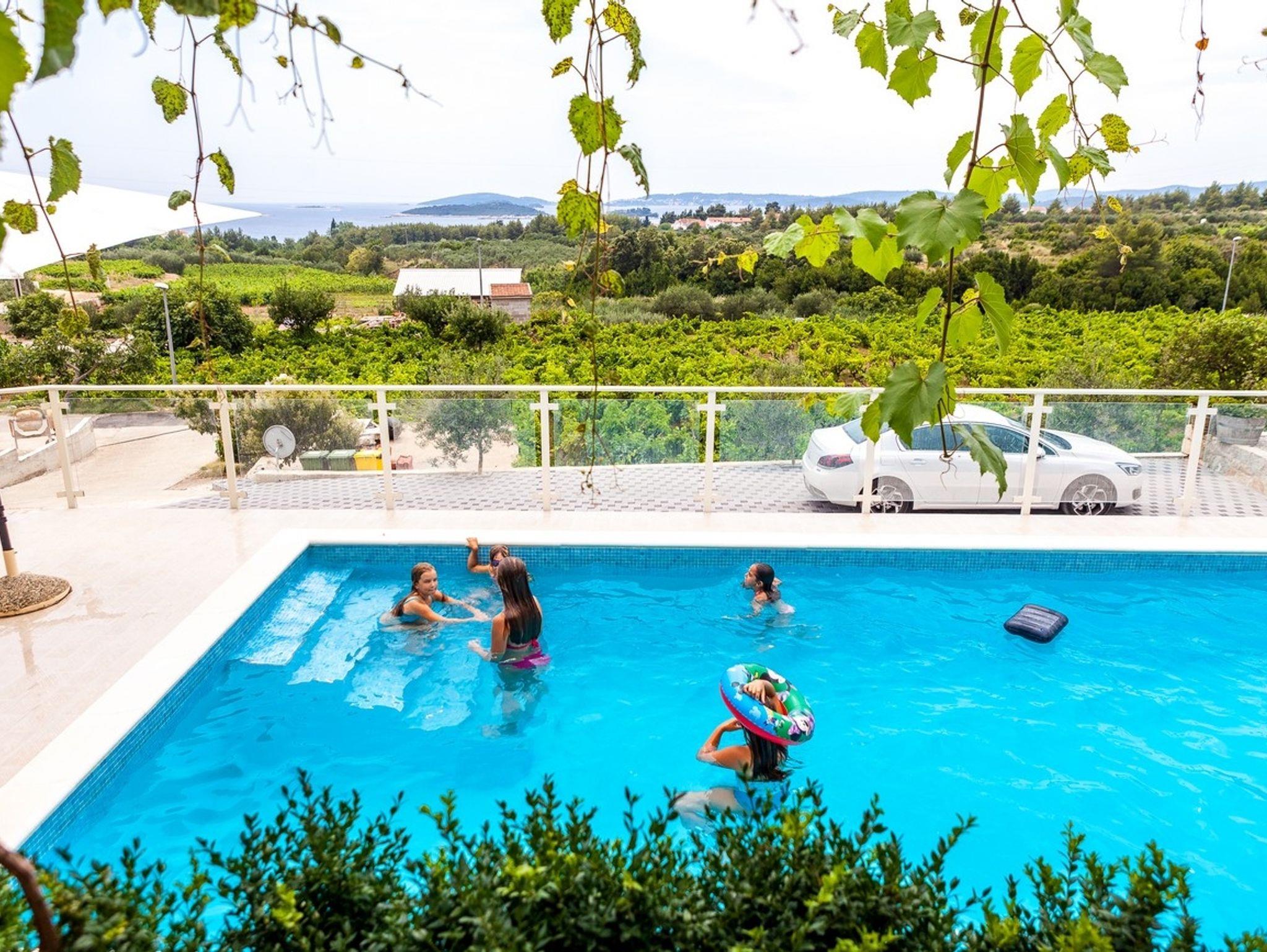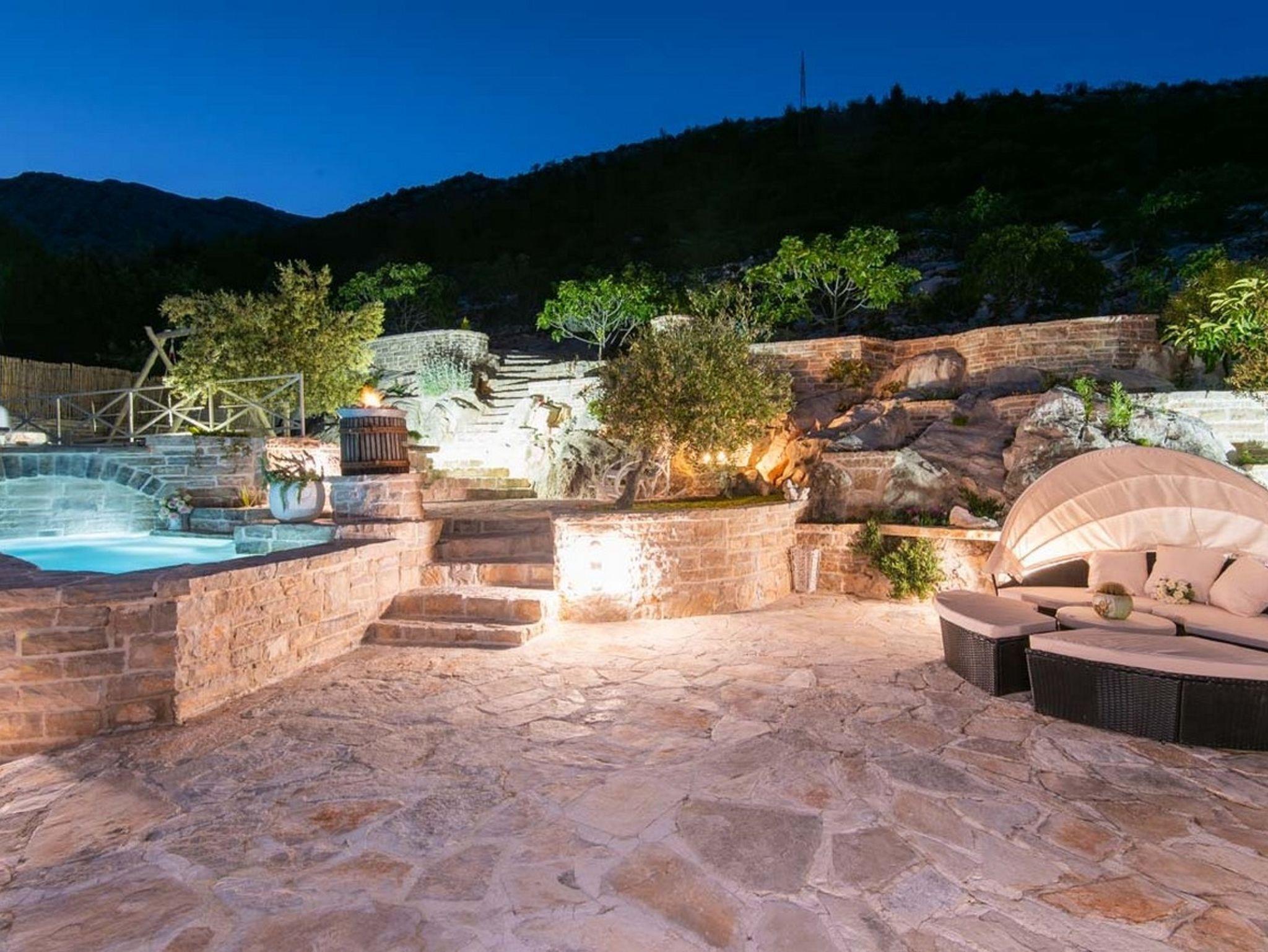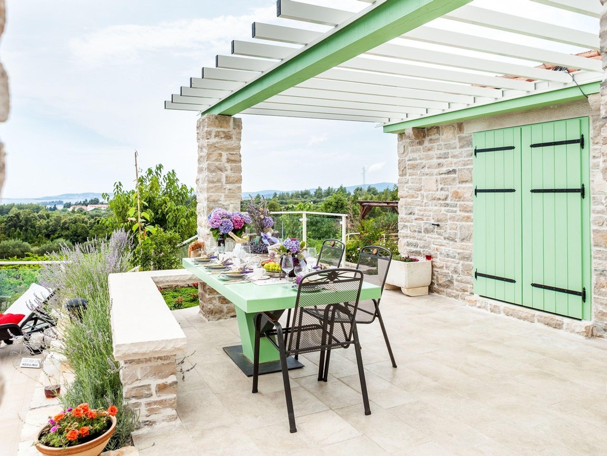 Haus bietet Platz für 14 Gäste. Die Betten sind in Schlafzimmern, die es 7 gibt, innerhalb einer Gesamtfläche von 329m2, angeordnet. Die Gäste haben eine eigene Terrasse zur Verfügung, auf der sie in warmen Sommernächten genießen können. Das Haus bietet Meerblick. Es ist erlaubt, Speisen auf dem Gemeinschafts-Grill vorzubereiten. Während ihres Aufenthalts können Gäste das gemeinsam zur Nutzung stehende Schwimmbad benutzen. Räume der gebuchten Unterkunftseinheit werden nicht in eine Ganze verbunden. IM PREIS INBEGRIFFEN: Kurtaxe, Endreinigung, Klimatisierung, Pool, Parkplatz, Internet, Kinderbett, Bügeleisen, Bügelbrett, Föhn, Sonnenschirm, Liegestühle. Die Verfügbarkeit zusätzlicher Dienstleistungen in Ihrem reservierten Termin und die Preise derselben (falls nicht aufgeführt) müssen im Voraus überprüft werden. Zusätzliche Dienstleistungen die in der Zahlungsaufforderung nicht aufgeführt sind werden direkt beim Vermieter bezahlt, angenommen der Gast nutzt auch diese.