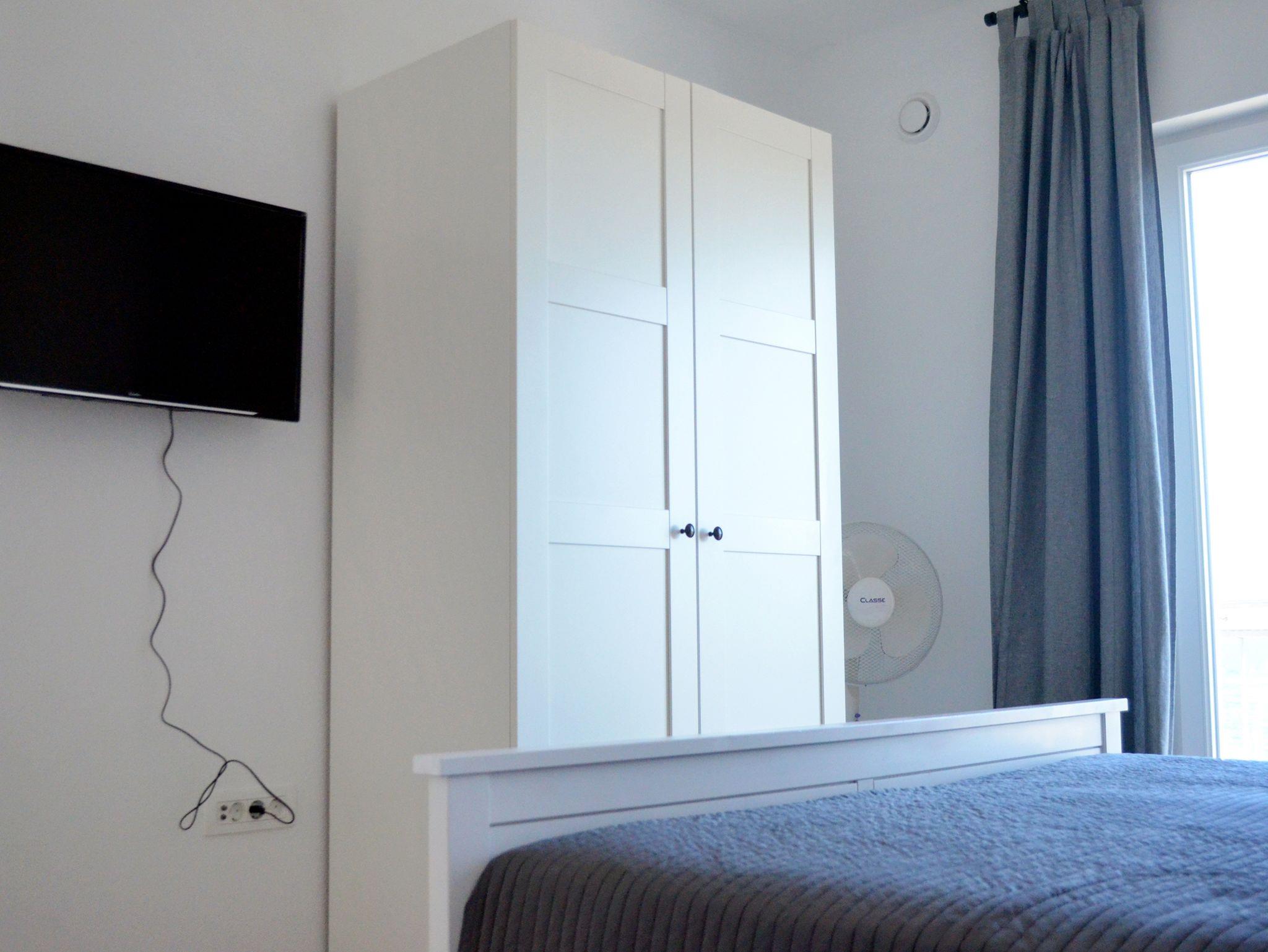 Studio bietet Platz für 3 Gäste. Die Betten sind in Schlafzimmern, die es 1 gibt, innerhalb einer Gesamtfläche von 29m2, angeordnet. Die Gäste haben einen eigenen Balkon zur Verfügung, auf der sie in warmen Sommernächten genießen können. Das Studio-Apartment bietet Meerblick. IM PREIS INBEGRIFFEN: Kurtaxe, Endreinigung, Klimatisierung, Parkplatz, Internet, Bügeleisen, Bügelbrett, Föhn. VERBINDLICHE ZUSÄTZLICHE KOSTEN: Aufzahlung für Kurzaufenthalte (prozentualer Zuschlag pro Nächtigungsanzahl: 30% - 1, 20% - 2, 10% - 3). UNVERBINDLICHE ZUSÄTZLICHE KOSTEN: Wäschewaschen (5,00 € Waschen). Die Verfügbarkeit zusätzlicher Dienstleistungen in Ihrem reservierten Termin und die Preise derselben (falls nicht aufgeführt) müssen im Voraus überprüft werden. Zusätzliche Dienstleistungen die in der Zahlungsaufforderung nicht aufgeführt sind werden direkt beim Vermieter bezahlt, angenommen der Gast nutzt auch diese.