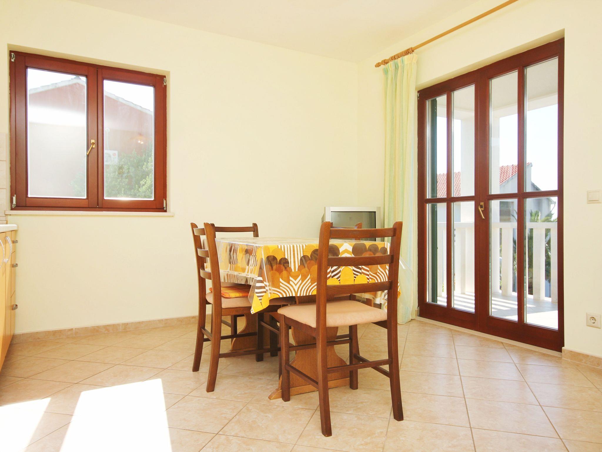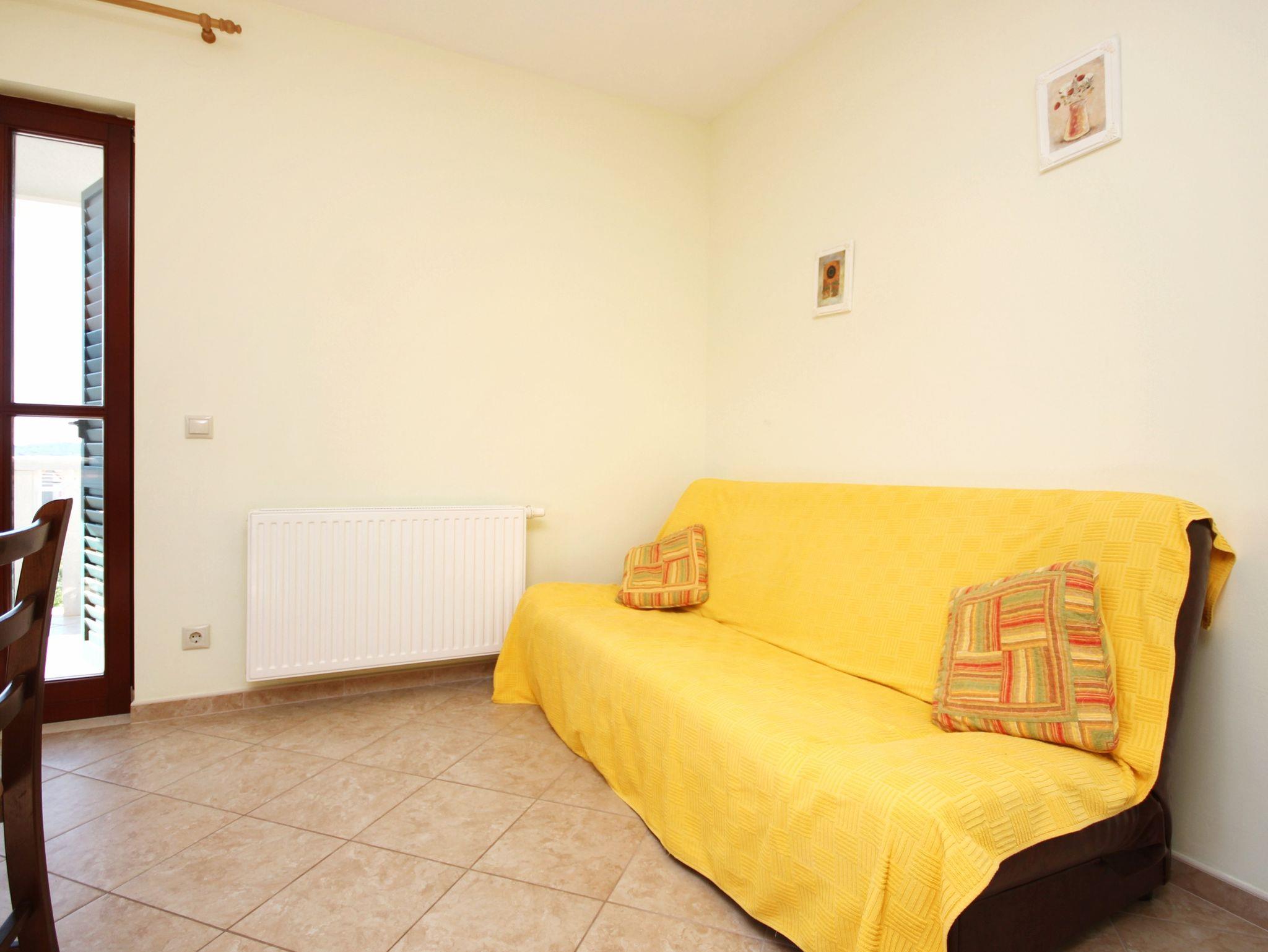 Ferienwohnung bietet Platz für 3 Gäste. Die Betten sind in Schlafzimmern, die es 1 gibt, und in Wohnzimmer, innerhalb einer Gesamtfläche von 37m2, angeordnet. Die Gäste haben eine eigene Terrasse zur Verfügung, auf der sie in warmen Sommernächten genießen können. Das Apartment bietet Meerblick. Es ist erlaubt, Speisen auf dem Gemeinschafts-Grill vorzubereiten. IM PREIS INBEGRIFFEN: Kurtaxe, Endreinigung, Klimatisierung, Parkplatz, Internet, Bügeleisen, Bügelbrett. VERBINDLICHE ZUSÄTZLICHE KOSTEN: Aufzahlung für Kurzaufenthalte (prozentualer Zuschlag pro Nächtigungsanzahl: 30% - 1, 20% - 2, 10% - 3). Die Verfügbarkeit zusätzlicher Dienstleistungen in Ihrem reservierten Termin und die Preise derselben (falls nicht aufgeführt) müssen im Voraus überprüft werden. Zusätzliche Dienstleistungen die in der Zahlungsaufforderung nicht aufgeführt sind werden direkt beim Vermieter bezahlt, angenommen der Gast nutzt auch diese.