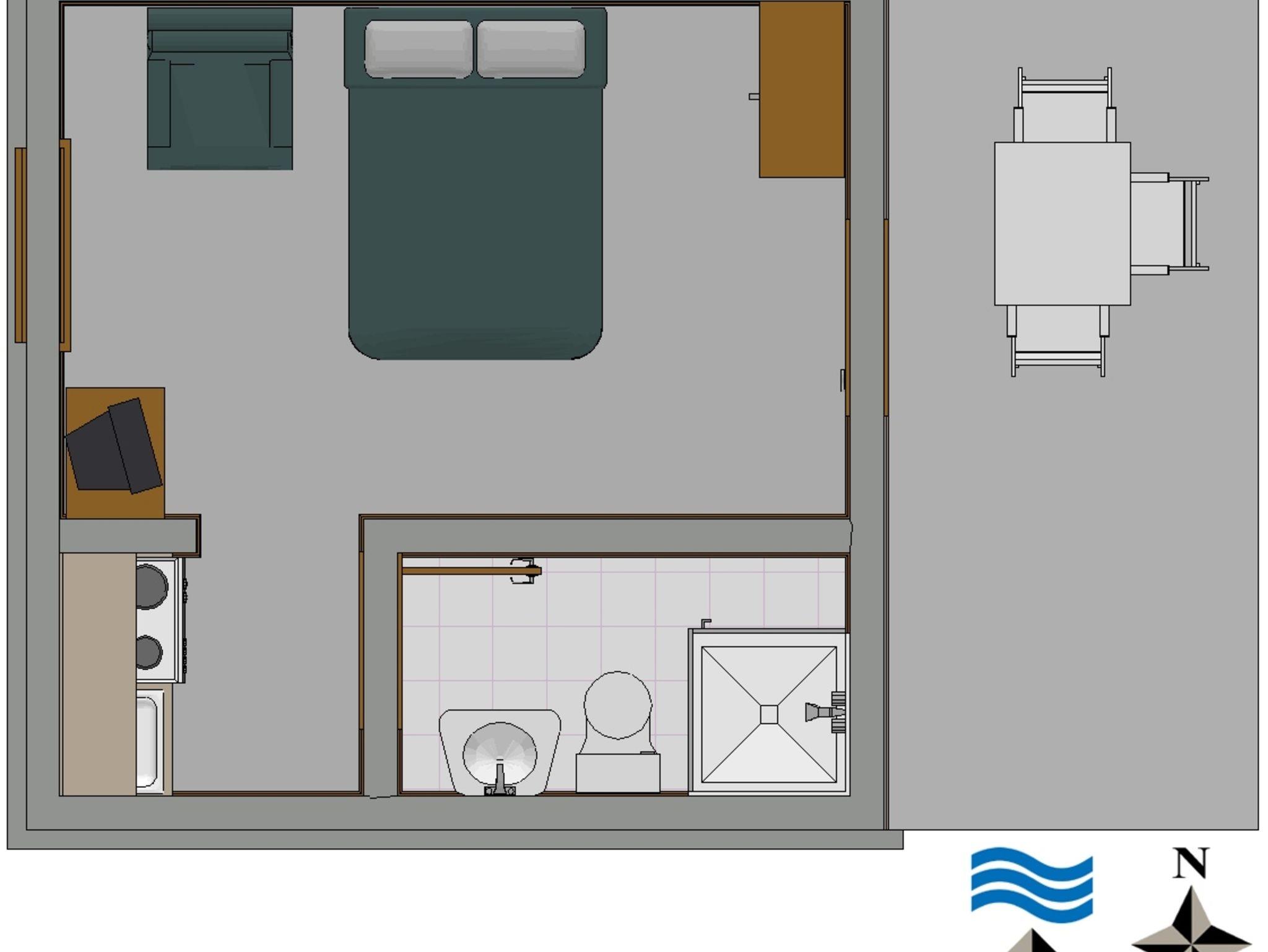 Studio bietet Platz für 2 Gäste. Die Betten sind in Schlafzimmern, die es 1 gibt, innerhalb einer Gesamtfläche von 15m2, angeordnet. Die Gäste haben eine eigene Terrasse zur Verfügung, auf der sie in warmen Sommernächten genießen können. Es ist erlaubt, Speisen auf dem Gemeinschafts-Grill vorzubereiten. IM PREIS INBEGRIFFEN: Kurtaxe, Endreinigung, Parkplatz, Internet, Bügeleisen, Bügelbrett, Föhn. VERBINDLICHE ZUSÄTZLICHE KOSTEN: Aufzahlung für Kurzaufenthalte (prozentualer Zuschlag pro Nächtigungsanzahl: 30% - 1, 20% - 2, 10% - 3). UNVERBINDLICHE ZUSÄTZLICHE KOSTEN: Klimatisierung (5,00 € pro Nacht), Boot (100,00 € pro Nacht). Die Verfügbarkeit zusätzlicher Dienstleistungen in Ihrem reservierten Termin und die Preise derselben (falls nicht aufgeführt) müssen im Voraus überprüft werden. Zusätzliche Dienstleistungen die in der Zahlungsaufforderung nicht aufgeführt sind werden direkt beim Vermieter bezahlt, angenommen der Gast nutzt auch diese.