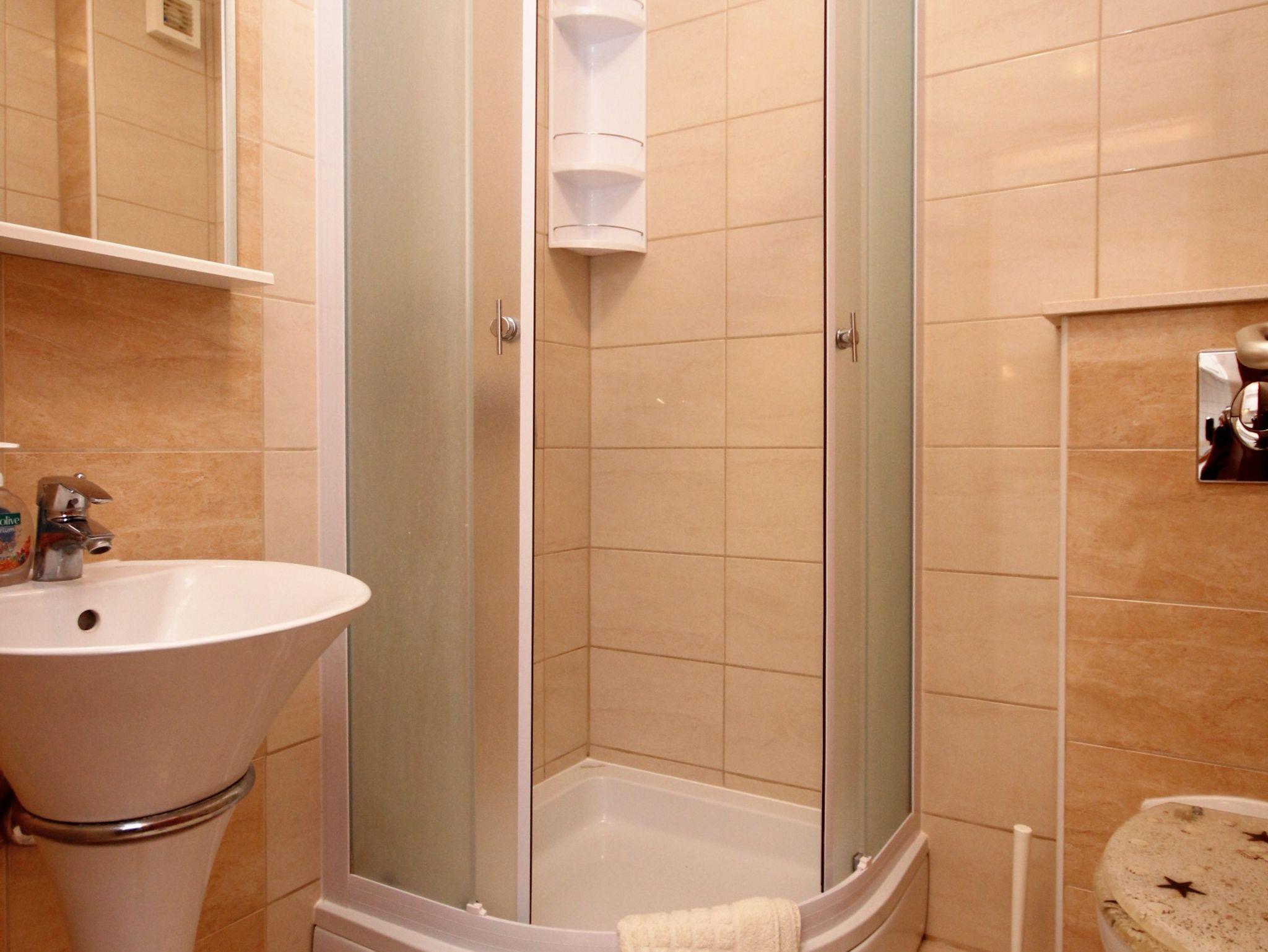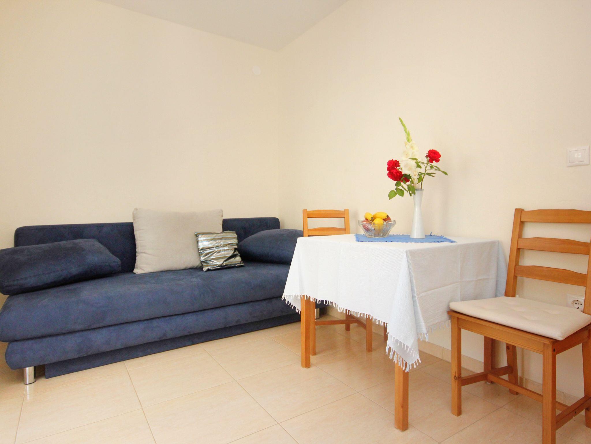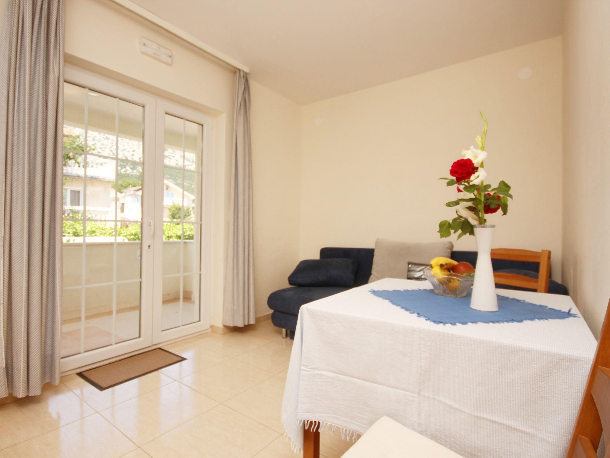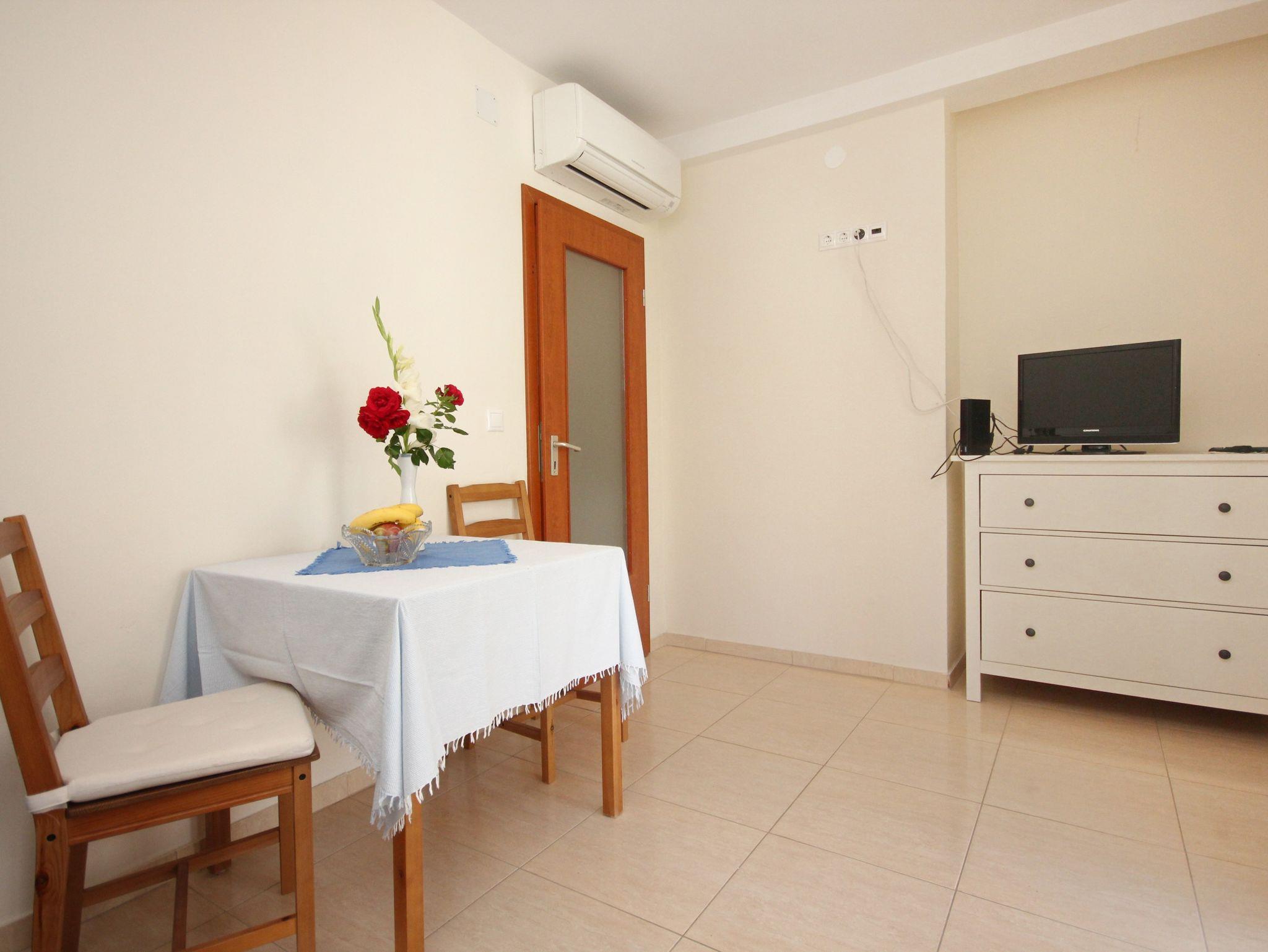 Ferienwohnung bietet Platz für 4 Gäste. Die Betten sind in Schlafzimmern, die es 1 gibt, und in Esszimmer, innerhalb einer Gesamtfläche von 33m2, angeordnet. Die Gäste haben eine eigene Terrasse zur Verfügung, auf der sie in warmen Sommernächten genießen können. Das Apartment bietet Meerblick. IM PREIS INBEGRIFFEN: Kurtaxe, Endreinigung, Klimatisierung, Parkplatz, Internet, Kinderbett, Bügeleisen, Bügelbrett, Föhn. VERBINDLICHE ZUSÄTZLICHE KOSTEN: Aufzahlung für Kurzaufenthalte (prozentualer Zuschlag pro Nächtigungsanzahl: 30% - 1, 20% - 2, 10% - 3). Die Verfügbarkeit zusätzlicher Dienstleistungen in Ihrem reservierten Termin und die Preise derselben (falls nicht aufgeführt) müssen im Voraus überprüft werden. Zusätzliche Dienstleistungen die in der Zahlungsaufforderung nicht aufgeführt sind werden direkt beim Vermieter bezahlt, angenommen der Gast nutzt auch diese. Ermäßigung auf den Grundpreis: Gratistag 14=13 (bei einem Aufenthalt von 14 Tagen oder mehr erhalten Sie einen Gratistag für den Aufenthalt bis 31.12.26).