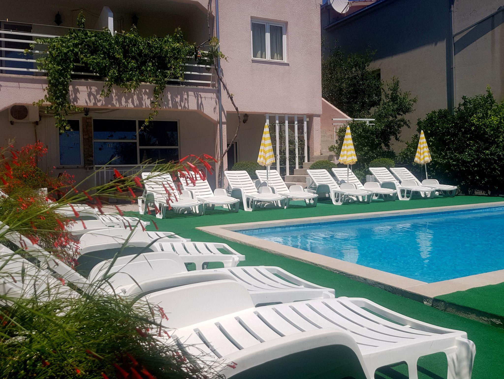 Umgebung des Objekts (Ordentlich), Hof (100m2, Kinderbereich), Parkplatz (Anzahl der Parkplätze: 5, Entfernung vom Objekt: im Hof), Pool: gemeinsam, Dimensionen: 7.6m x 3.6m x 1.5m, Wassertyp: Süßwasser, Grill: gemeinsam, WiFi Internet, Föhn, Bügeleisen, Bügelbrett, Kinderbett