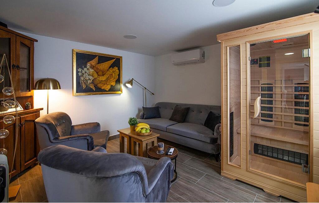 Huset ligger i virkelig idylliske omgivelser og er ideelt indrettet til et ophold med en større flok. Indretningen fremtræder på en gang stilsikkert og hyggeligt, og med de mange gode faciliteter får I alt, I behøver for bare at kunne slappe af og hvile benene efter dagens udflugter. Skal I gøre det ekstra lækkert for jer selv, kan I svede igennem i saunaen eller nyde boblerne i spabadet med en fantastisk udsigt, inden I lader aftenen gå på hæld med et godt glas vin ved brændeovnen.