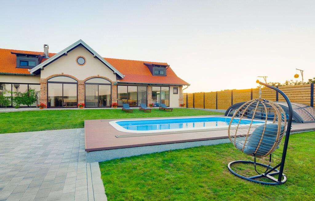 Tag en dukkert i den rummelige pool, eller nyd den landlige atmosfære under den elegante pergola. Tilbring stemningsfulde aftener med familie og venner på den overdækkede terrasse med grillplads.