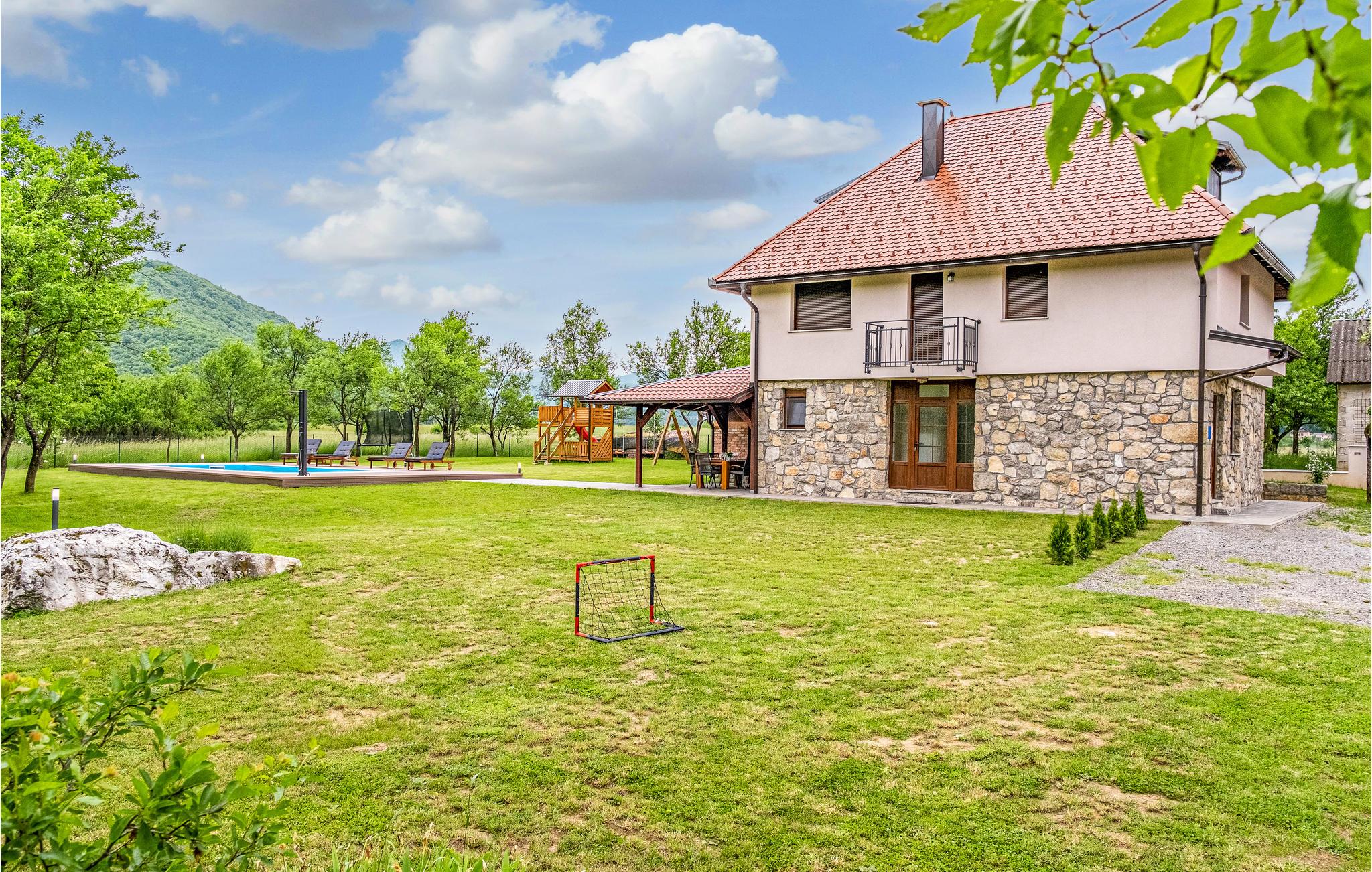 Ikke langt fra centrum af Otocac ligger dette smukke hus ved floden Gacka med en privat strand ved floden. Det moderne og rummelige hus er ideelt til en eller to familier. Det komplette udstyr giver jer mulighed for at nyde en ubekymret ferie. Lad børnene lege på legeredskaberne, ved åen og på den store grønne grund, mens I slapper af på liggestolene med udsigt over det fortryllende landskab. Om aftenen kalder I til en lækker grillmiddag fra stengrillen, som I kan nyde på den overdækkede terrasse.