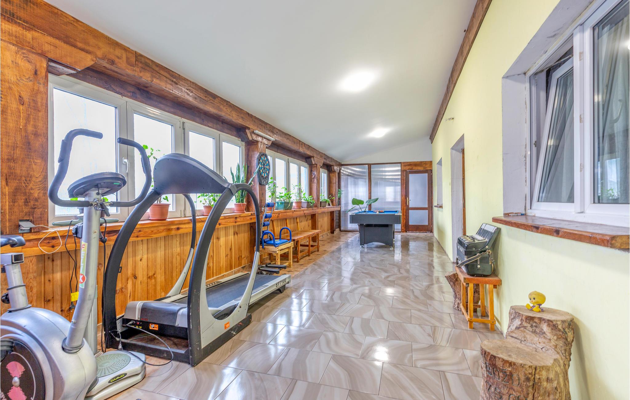 Dette rummelige sommerhus er ideelt til en stor gruppe eller flere familier, der ønsker at tilbringe en hyggelig ferie sammen. Et højdepunkt i huset er det smukke wellness-område med indendørs pool, spabad og sauna. Aktive ferierende kan holde sig i form på ferien takket være fitnessudstyret i huset. Underholdning er forsynet med billard, dart, tv og WiFi.