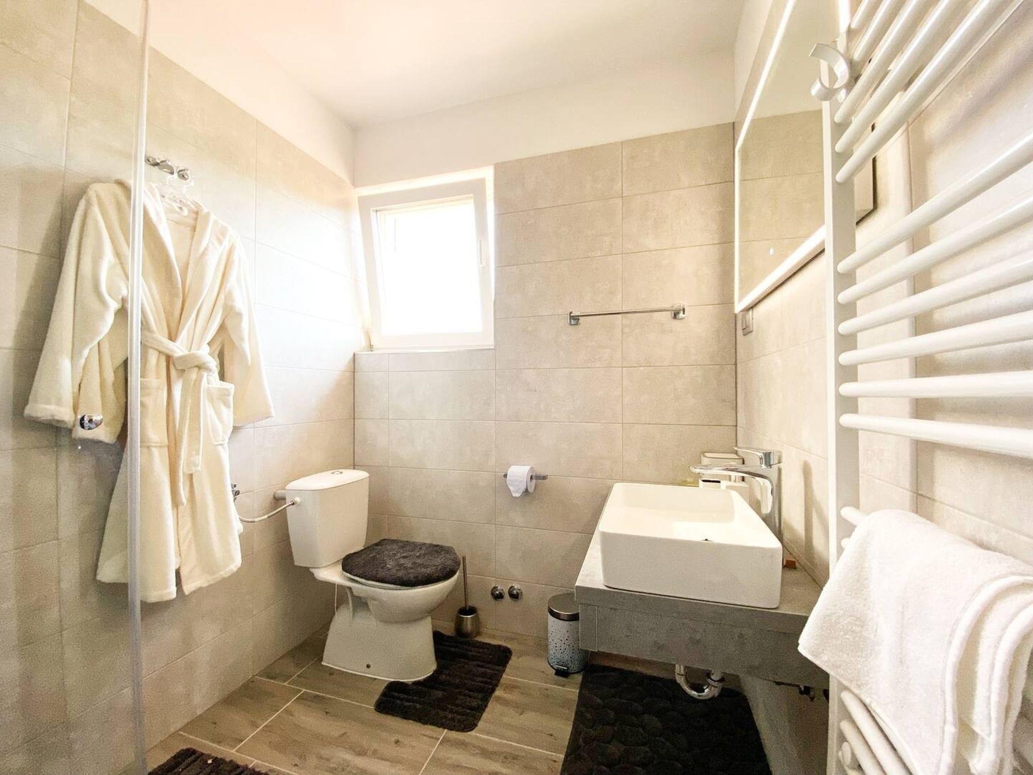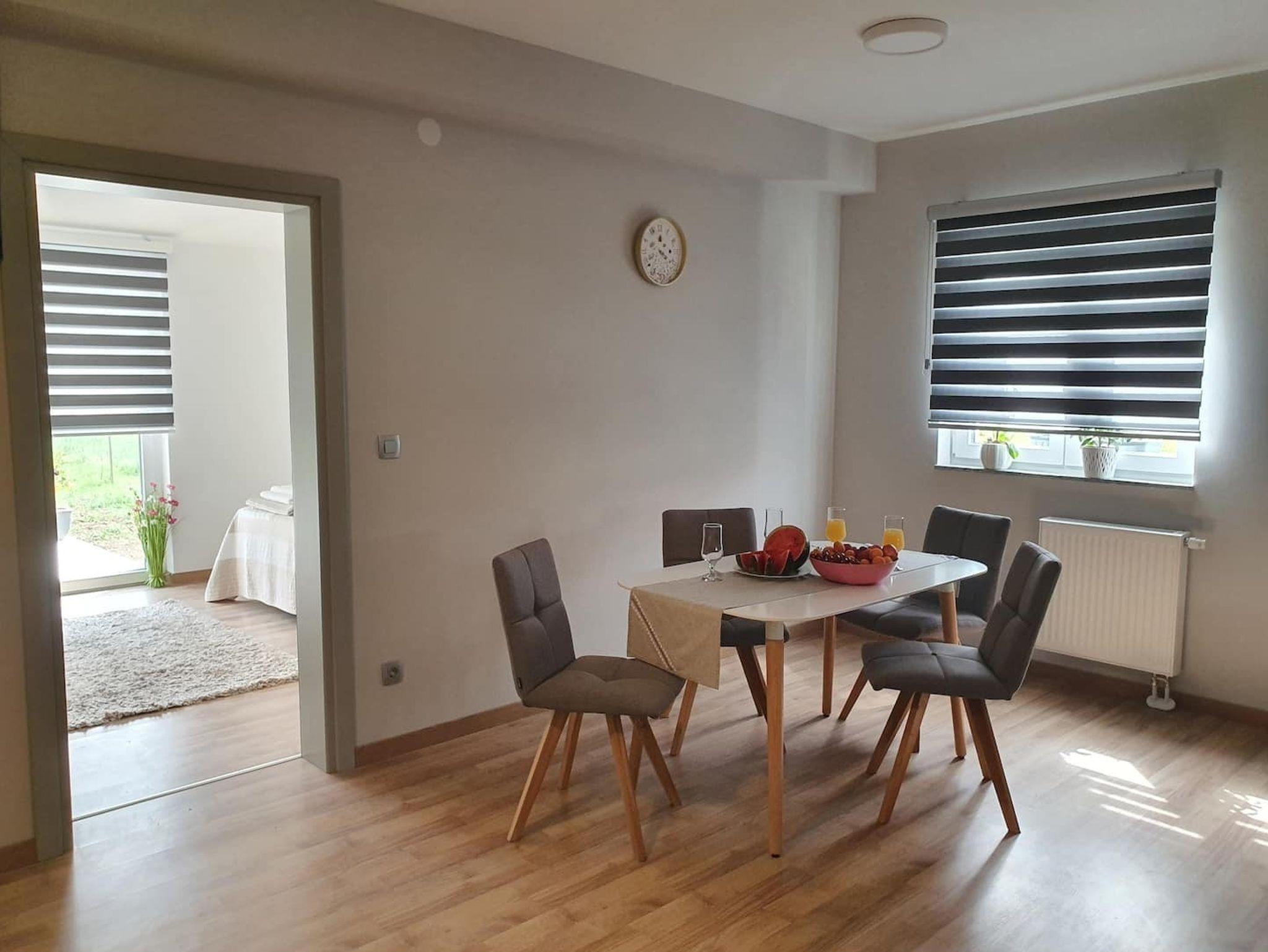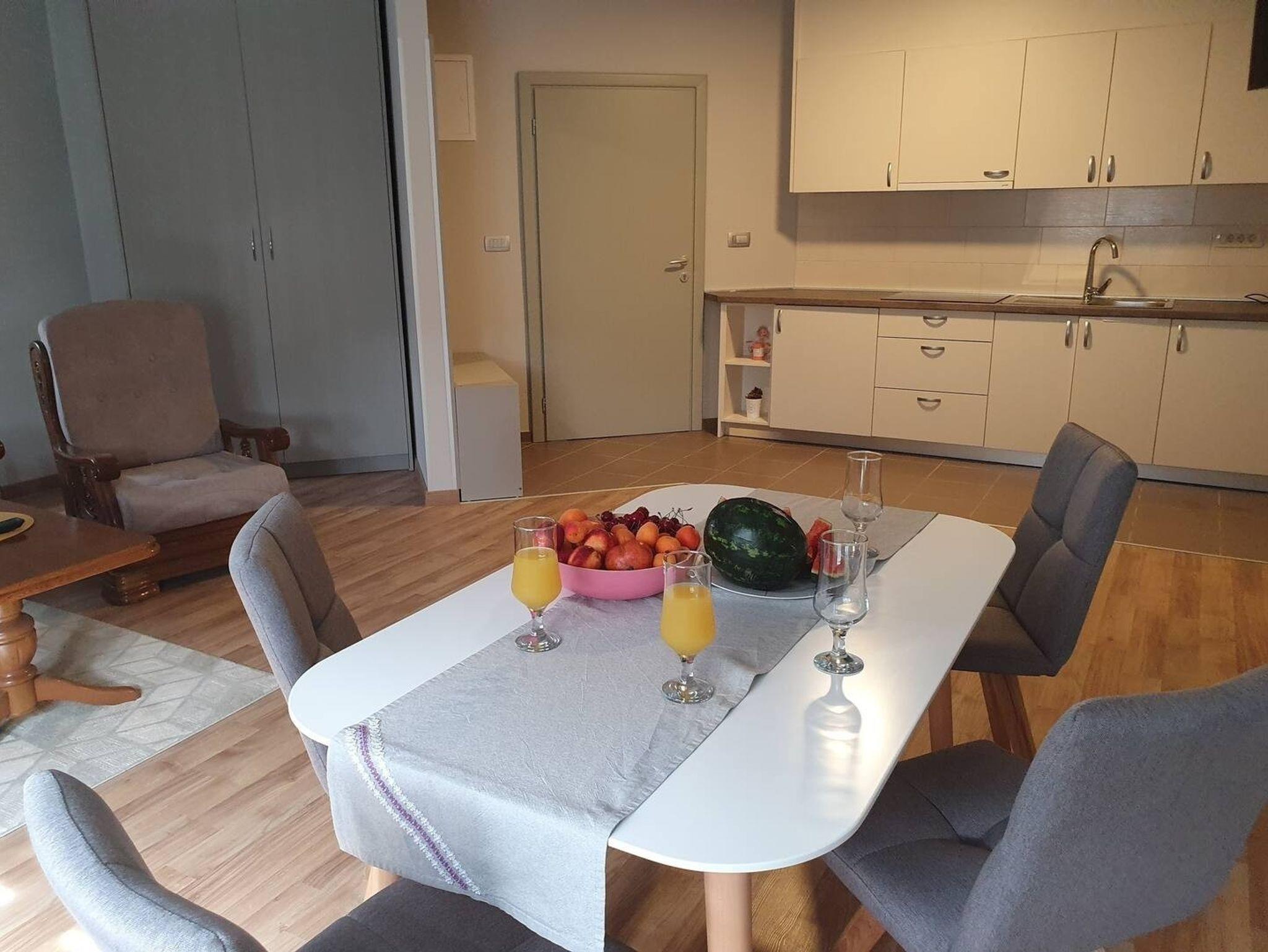 Ferienwohnung bietet Platz für 2 Gäste. Die Betten sind in Schlafzimmern, die es 1 gibt, innerhalb einer Gesamtfläche von 54m2, angeordnet. Die Gäste haben eine eigene Terrasse zur Verfügung, auf der sie in warmen Sommernächten genießen können. Es ist erlaubt, Speisen auf dem Gemeinschafts-Grill vorzubereiten. Während ihres Aufenthalts können Gäste das gemeinsam zur Nutzung stehende Schwimmbad benutzen. In der Unterkunftseinheit besteht die Möglichkeit des Mitbringens von Haustieren gegen Aufpreis. IM PREIS INBEGRIFFEN: Kurtaxe, Endreinigung, Zentralheizung, Pool, Parkplatz, Internet, Kinderbett, Zusatzbett, Föhn. VERBINDLICHE ZUSÄTZLICHE KOSTEN: Aufzahlung für Kurzaufenthalte (prozentualer Zuschlag pro Nächtigungsanzahl: 30% - 1, 20% - 2, 10% - 3). UNVERBINDLICHE ZUSÄTZLICHE KOSTEN: Frühstück (15,00 €, 50% Nachlass für Kinder zwischen 4 und 12 Jahren, Kinder bis 4 Jahre sind frei.), Wäschewaschen (8,00 € Waschen), Haustiere (15,00 € pro Nacht), Fahrrad (10,00 € täglich (pro Stück)). Die Verfügbarkeit zusätzlicher Dienstleistungen in Ihrem reservierten Termin und die Preise derselben (falls nicht aufgeführt) müssen im Voraus überprüft werden. Zusätzliche Dienstleistungen die in der Zahlungsaufforderung nicht aufgeführt sind werden direkt beim Vermieter bezahlt, angenommen der Gast nutzt auch diese. Ermäßigung auf den Grundpreis: Gratistag 14=13 (bei einem Aufenthalt von 14 Tagen oder mehr erhalten Sie einen Gratistag für den Aufenthalt bis 31.12.26).