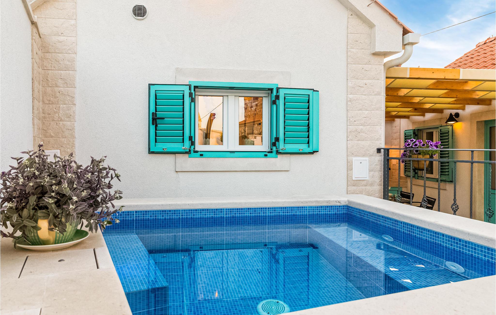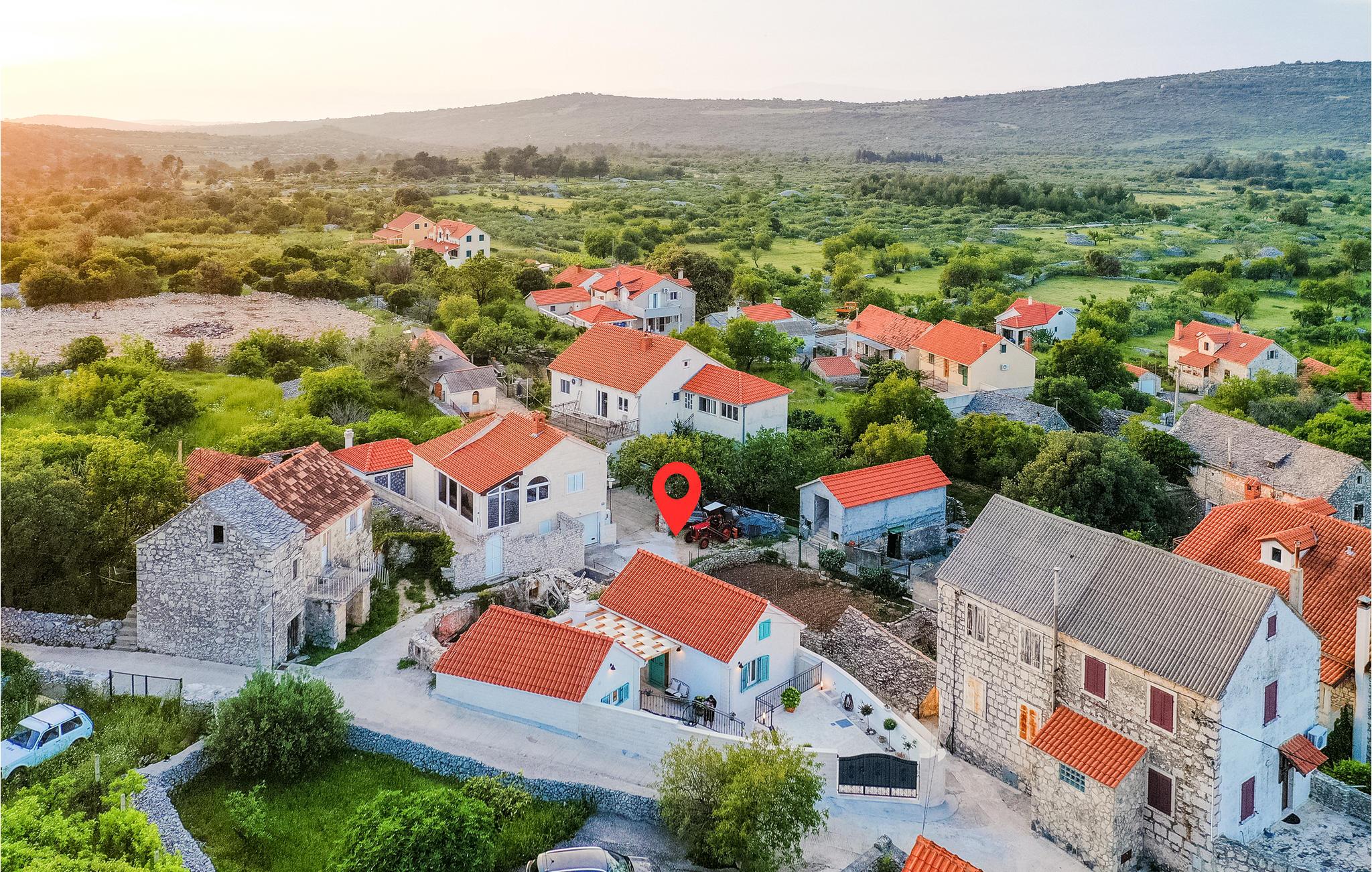 Dette feriehus ligger centralt i den charmerende landsby Dracevica på øen Brac. Her venter jer et veludstyret og nænsomt dekoreret interiør, som gør et varmt og personligt indtryk - de optimale betingelser for en afslappende ferie med familien. Brug afslappende timer på at læse på den lukkede terrasse i løbet af dagen, nyd wellness i spabadet og afslut senere dagen med en lækker udendørs middag i stemningsfulde omgivelser.