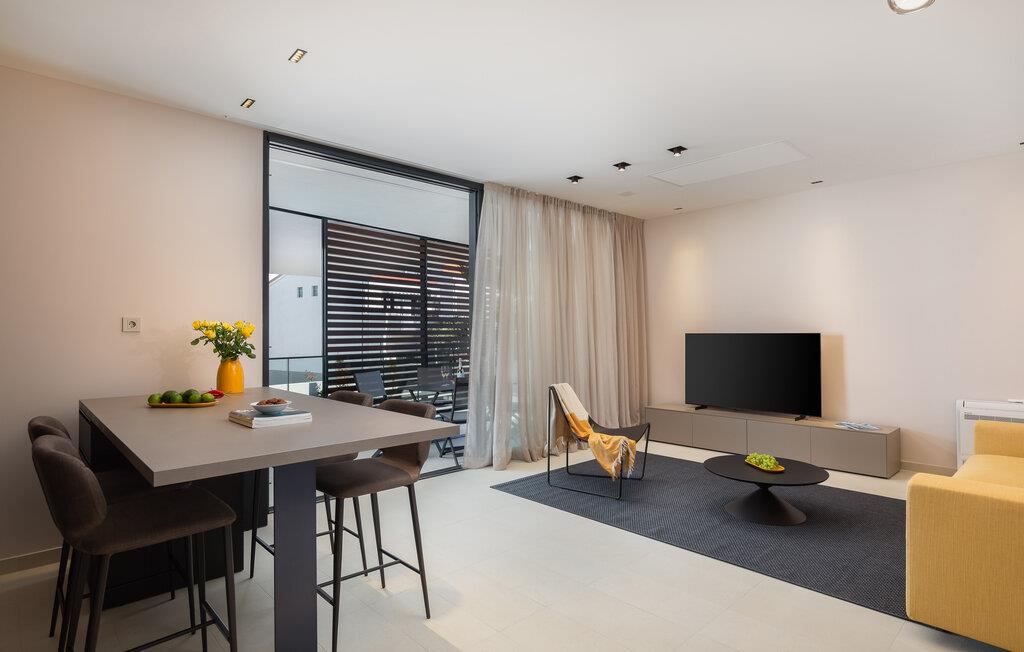 Der er lagt op til en skøn ferie med base i denne luksuriøse familielejlighed, som ligger i et moderne feriehuskompleks lige ud til havet. Her kan I se frem til en lys og stilfuld bolig med moderne design, hvilket giver jer en ferie med maksimal komfort og gode betingelser for afslappende familiestunder.