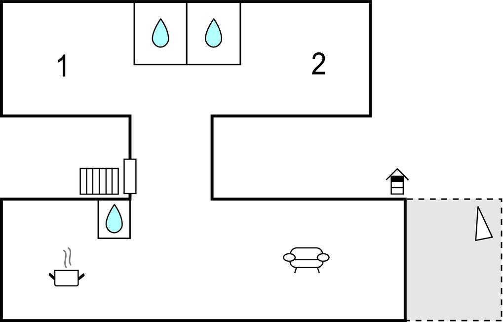 Opholdsstue/køkken 60m2 - 2 Sovepladser. (Sofa, madras eller lignende).