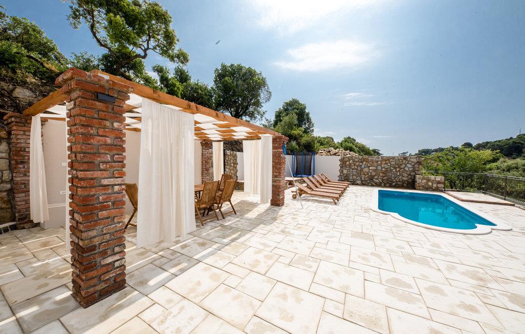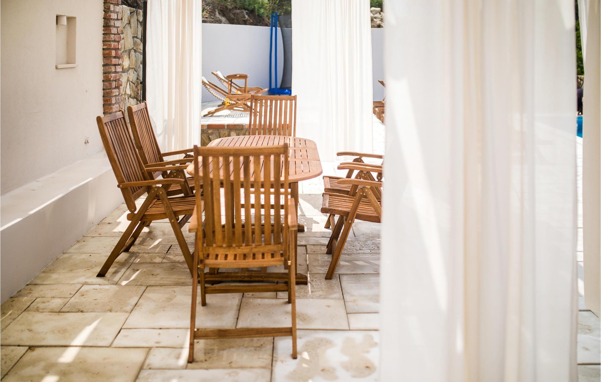 Udearealet med flere terrasser behøver heller ikke gemme sig. Her kan I nyde solen og bade i den private pool. Nyd den smukke have og se jeres børn løbe rundt. Om aftenen kan I lade dagene slutte under pavillonen med en grill og planlægge udflugter.