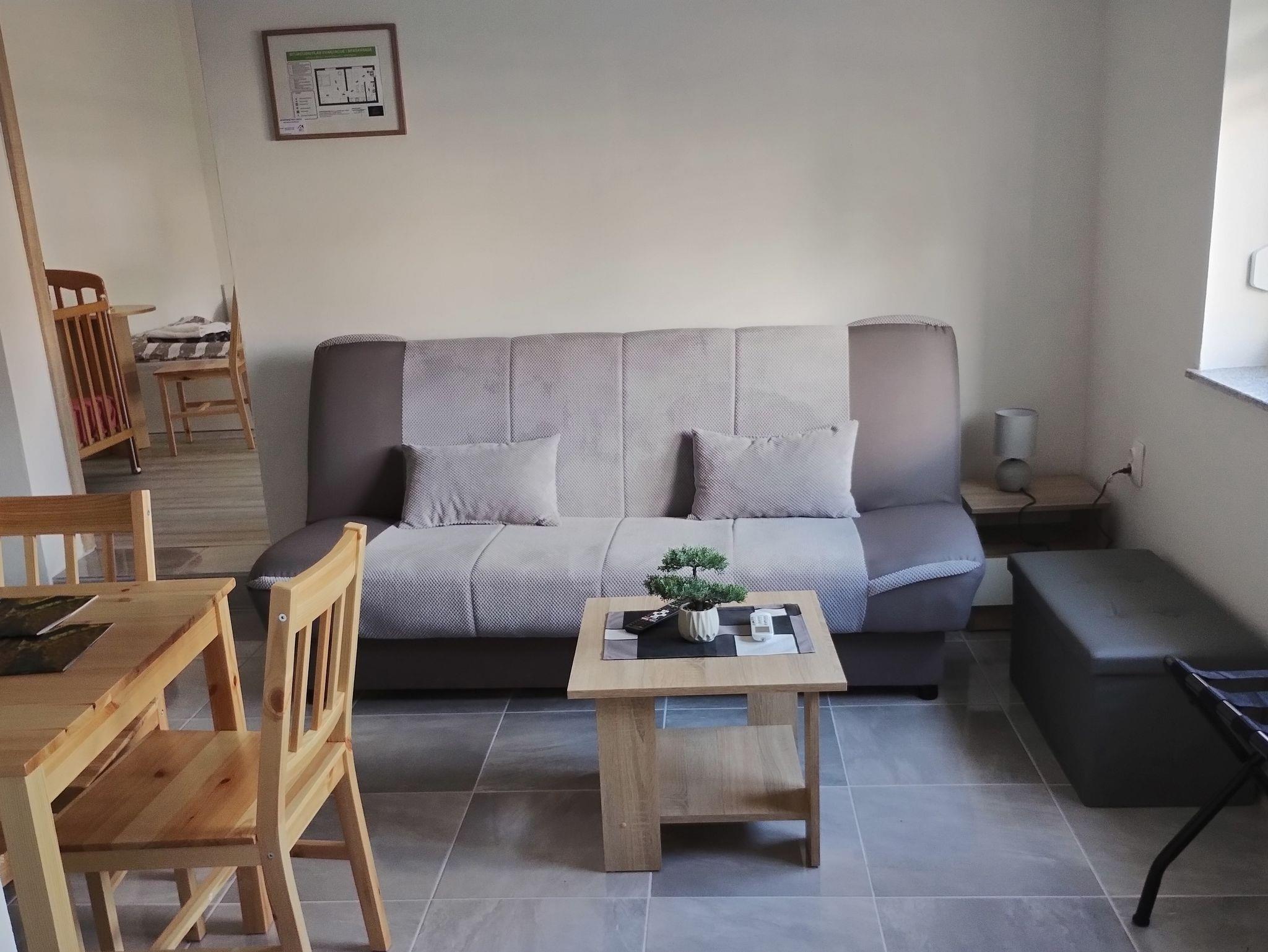 Ferienwohnung bietet Platz für 4 Gäste. Die Betten sind in Schlafzimmern, die es 1 gibt, und in Wohnzimmer, innerhalb einer Gesamtfläche von 44m2, angeordnet. In der Unterkunftseinheit besteht die Möglichkeit des Mitbringens von Haustieren, und die Dienstleistung ist im Preis der Unterkunft enthalten. Die reservierte Unterkunftseinheit hat keinen Balkon und keine Terrasse. IM PREIS INBEGRIFFEN: Kurtaxe, Endreinigung, Klimatisierung, Parkplatz, Internet, Haustiere, Kinderbett. Die Verfügbarkeit zusätzlicher Dienstleistungen in Ihrem reservierten Termin und die Preise derselben (falls nicht aufgeführt) müssen im Voraus überprüft werden. Zusätzliche Dienstleistungen die in der Zahlungsaufforderung nicht aufgeführt sind werden direkt beim Vermieter bezahlt, angenommen der Gast nutzt auch diese.