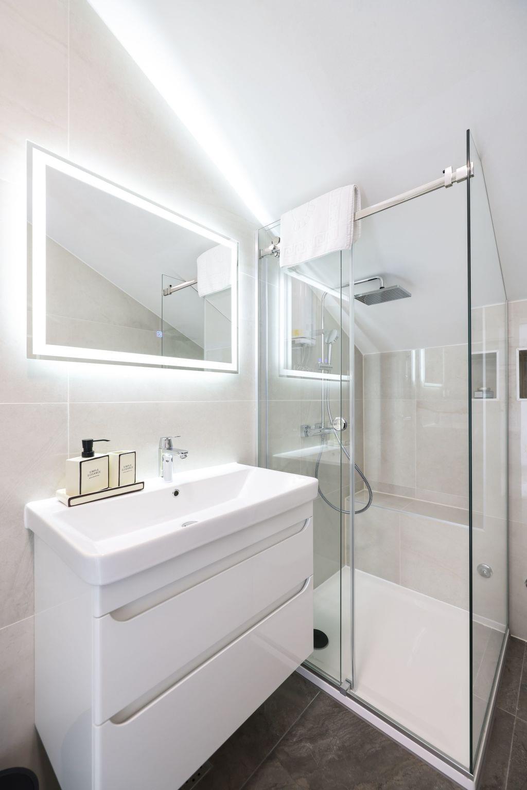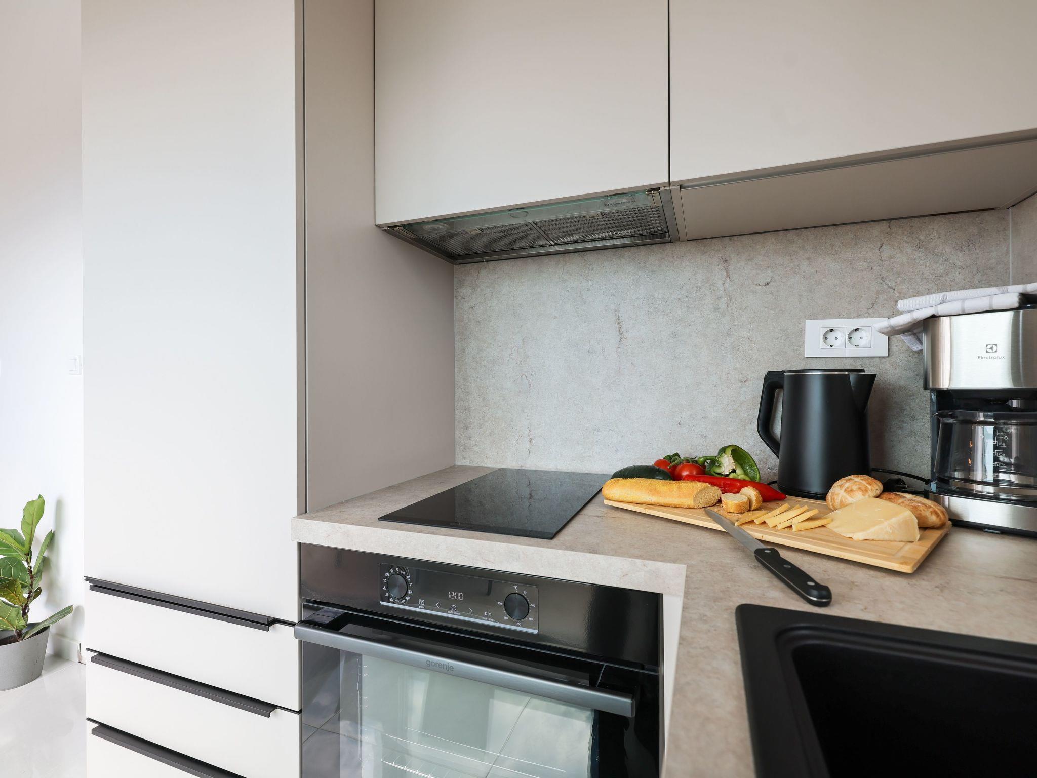 In the flat you will find a practical and well-equipped interior. The presence of air conditioning in all rooms ensures pleasant temperatures even in the hottest summer months. A games console is available for cosy evenings in, while a washing machine for your sole use adds to the comfort during your stay. The kitchen is equipped with modern amenities such as an induction hob, filter coffee machine and kettle to make your stay as comfortable as possible.