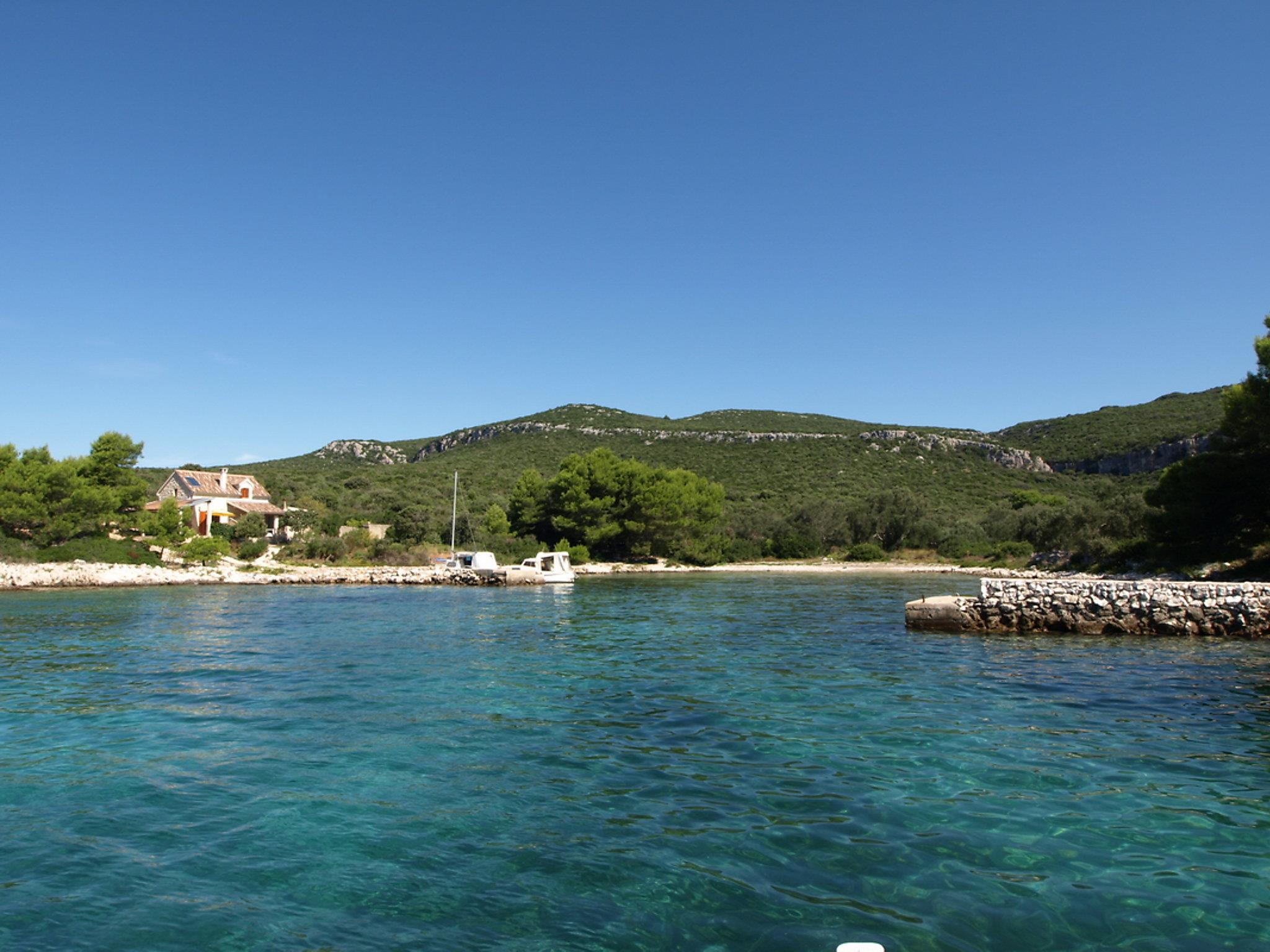 House situated on the southern coast of the island of Pašman, in the Celinja bay near the NP Kornati Archipelago. Single-family house "Jure", 2 storeys. 5 km from the centre of Nevidane, in a secluded, quiet, sunny position, 15 m from the sea, 15 m from the beach, in the countryside. Private: outdoor shower, barbecue. Motor access to 50 m from the house (via unmade road). Parking at 50 m. Shop 5 km, restaurant 5 km, bus stop 14.2 km, pebble beach 15 m. Please note: private mooring. Access possible by off-road car up to 50 m from the house. Transfer to the house can also be arranged by house owner`s off-road car if the guests prefer to leave the car on the parking reserved by the owner's house in Nevidane. The house is also suitable for guests with own boat. Possible to rent: boat (4,6 m long, outboard engine 5 HP), on request, extra (180 EUR per week). The owner delivers groceries (on request, 15.-€ per delivery). Possibility of buying autochthonous products (olive oil, brandy, white wine - on request, extra).