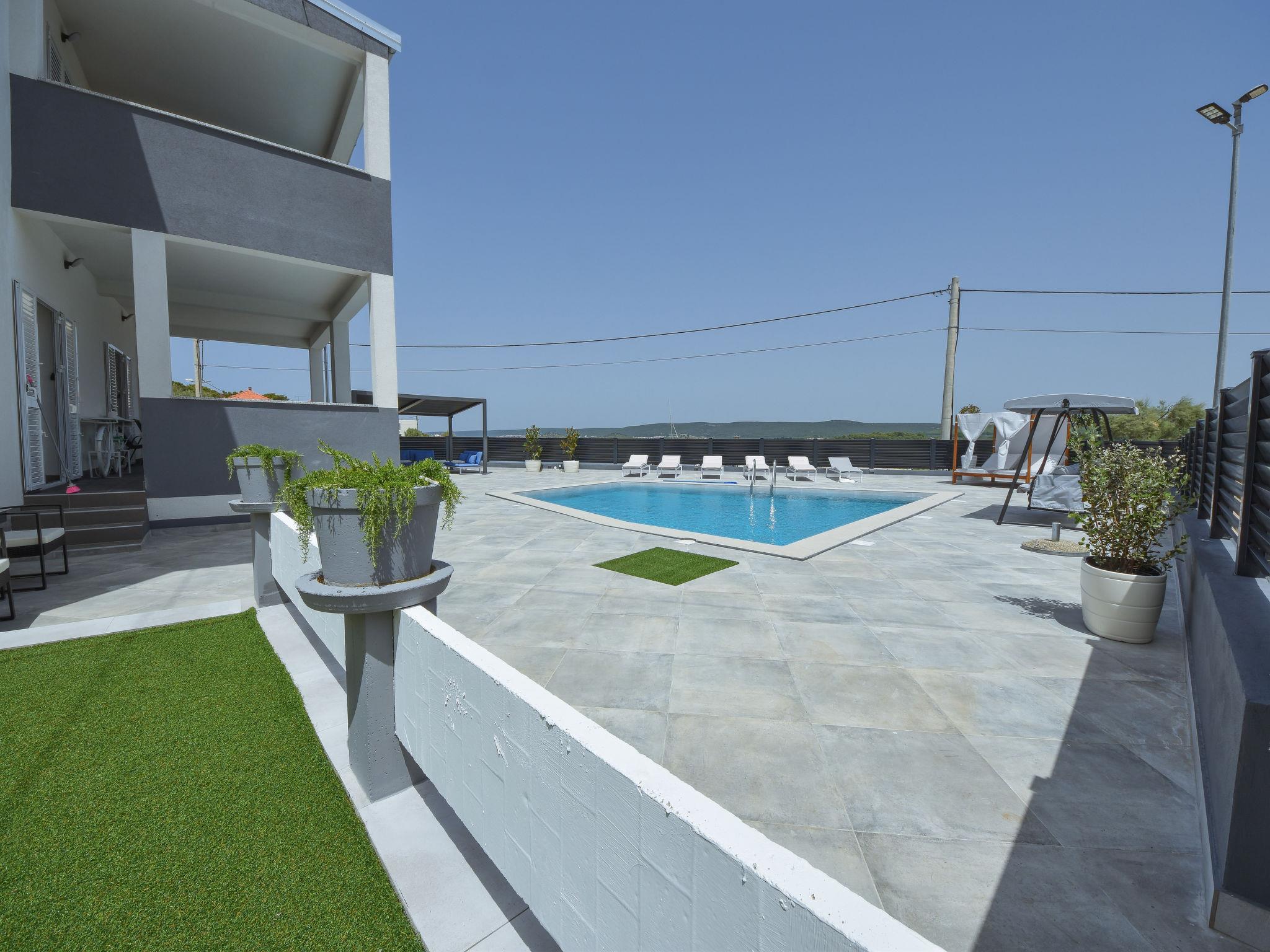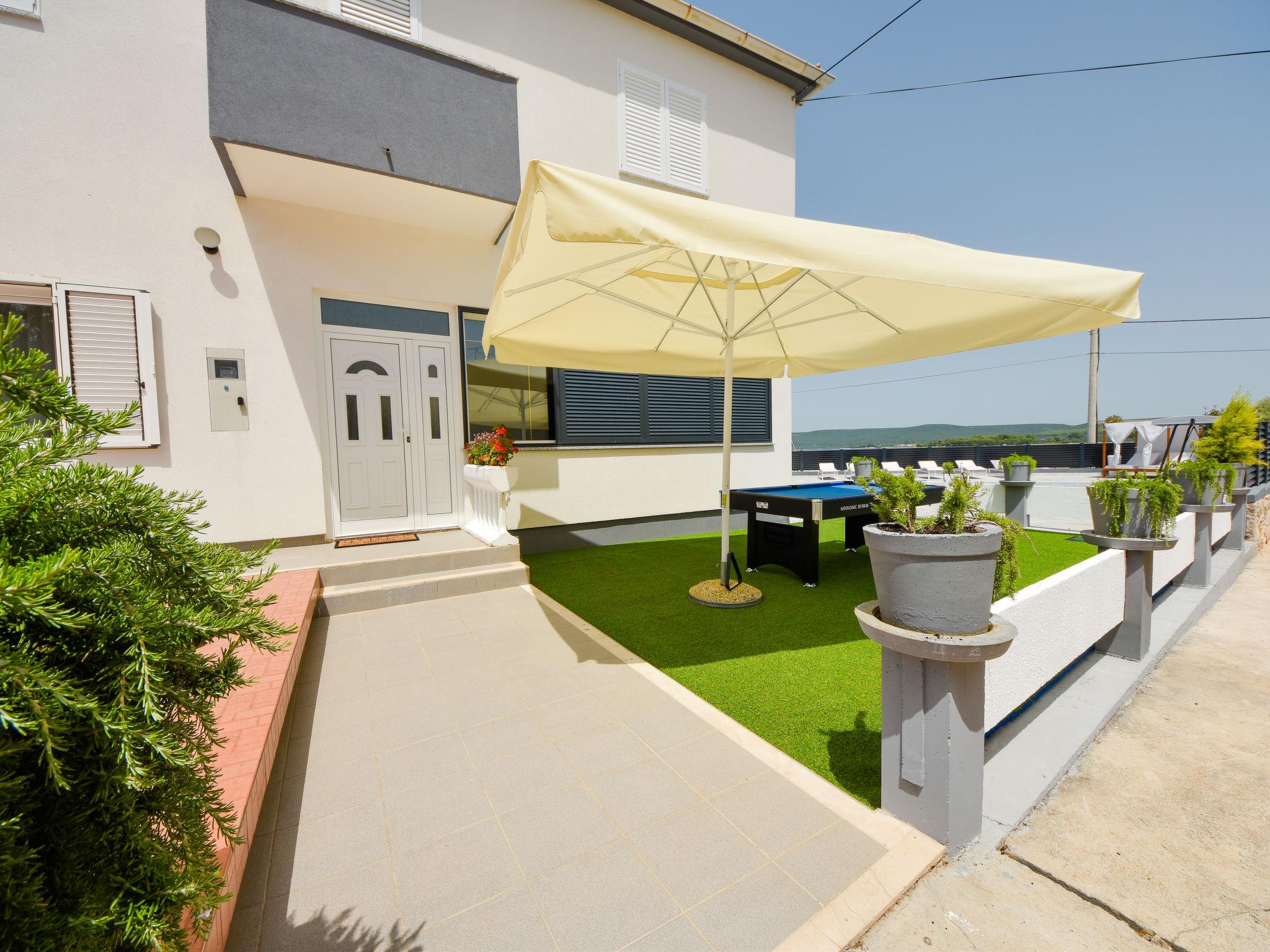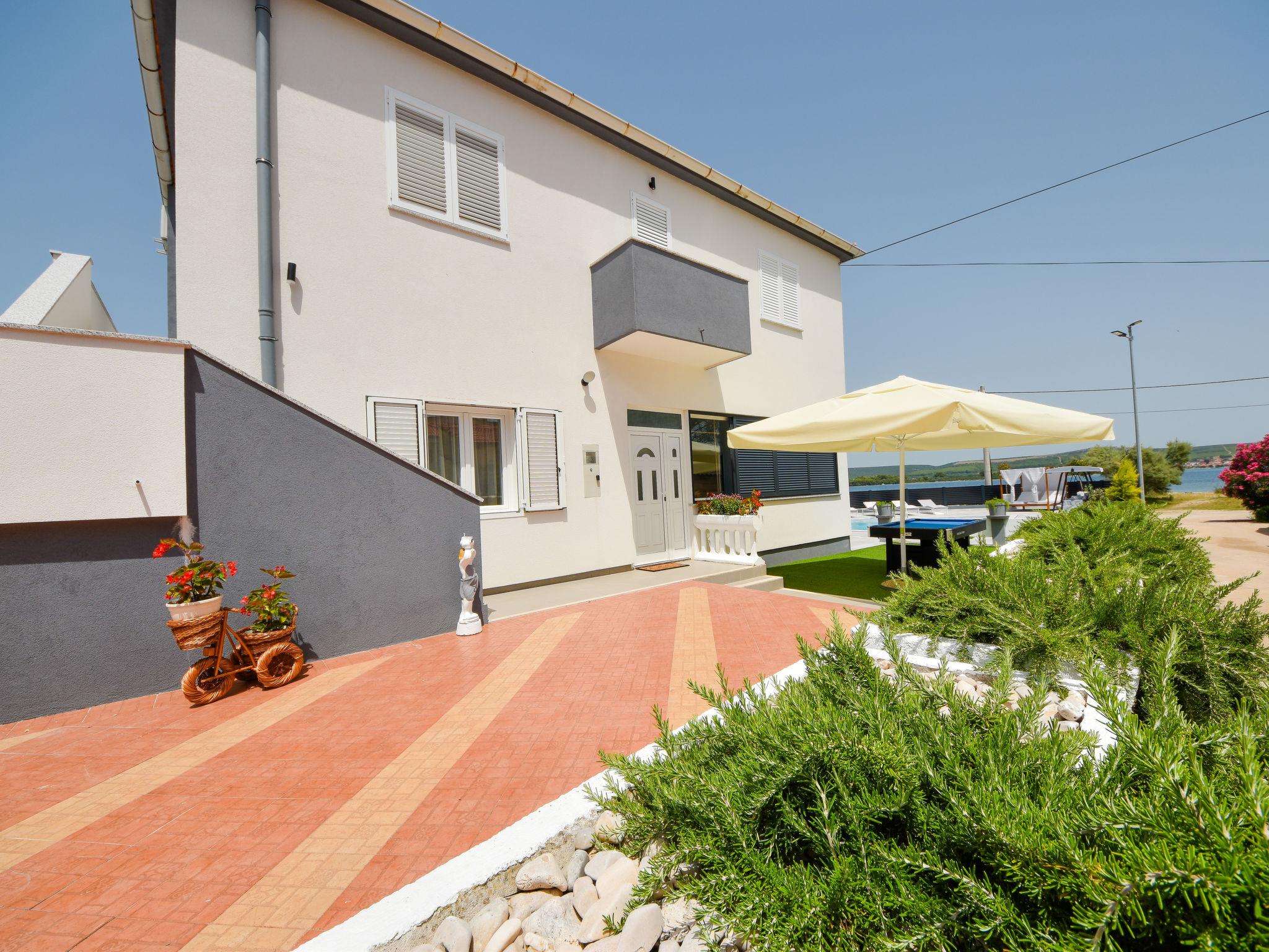Modern apartment house "Franka". In the resort, in a quiet position, 10 m from the sea, 20 m from the beach. Private: property 400 m2, swimming pool (7 x 7 m, 49 m2, depth 145 cm, seasonal availability: 01.May. - 01.Oct.). Outdoor shower, pergola, garden furniture. In the house: internet access, air conditioning. Parking at the house. Shop 15 m, restaurant 20 m, bus stop 9.4 km. Tennis 300 m. In front of the house concrete beach with sandy sea-bottom.