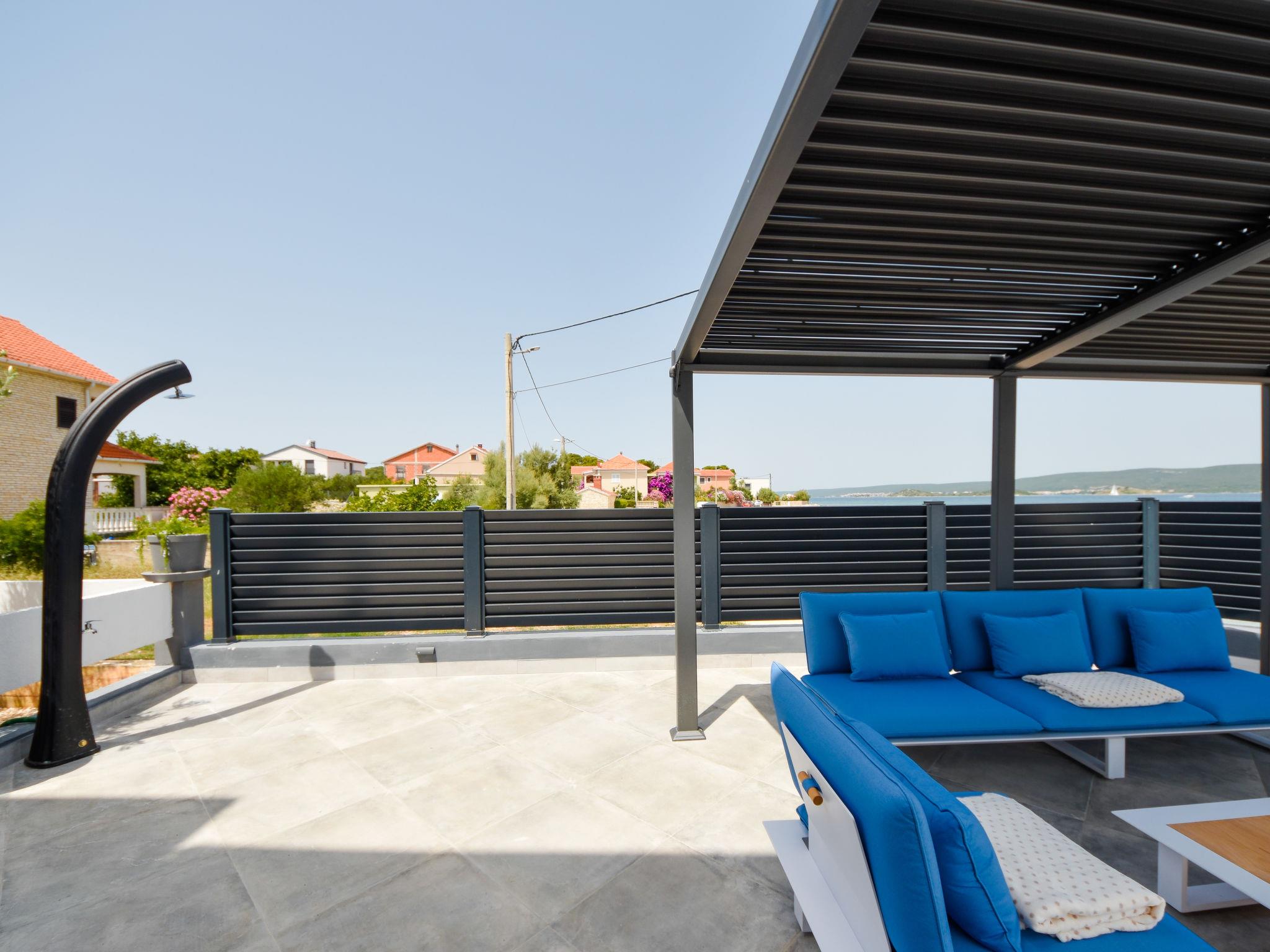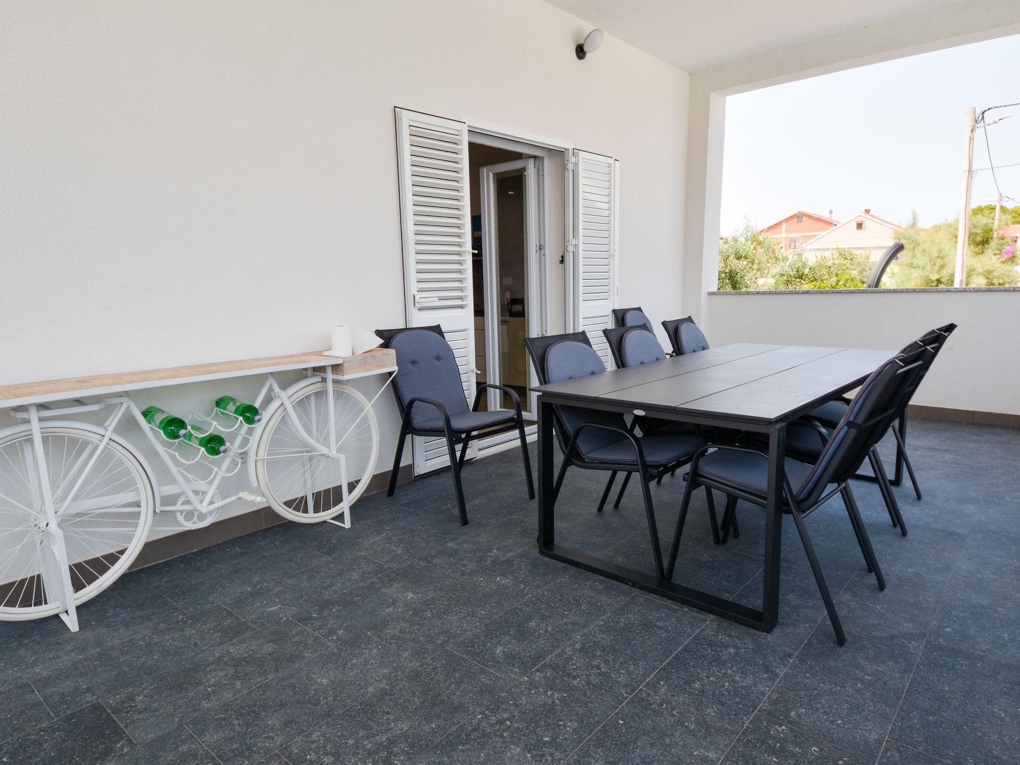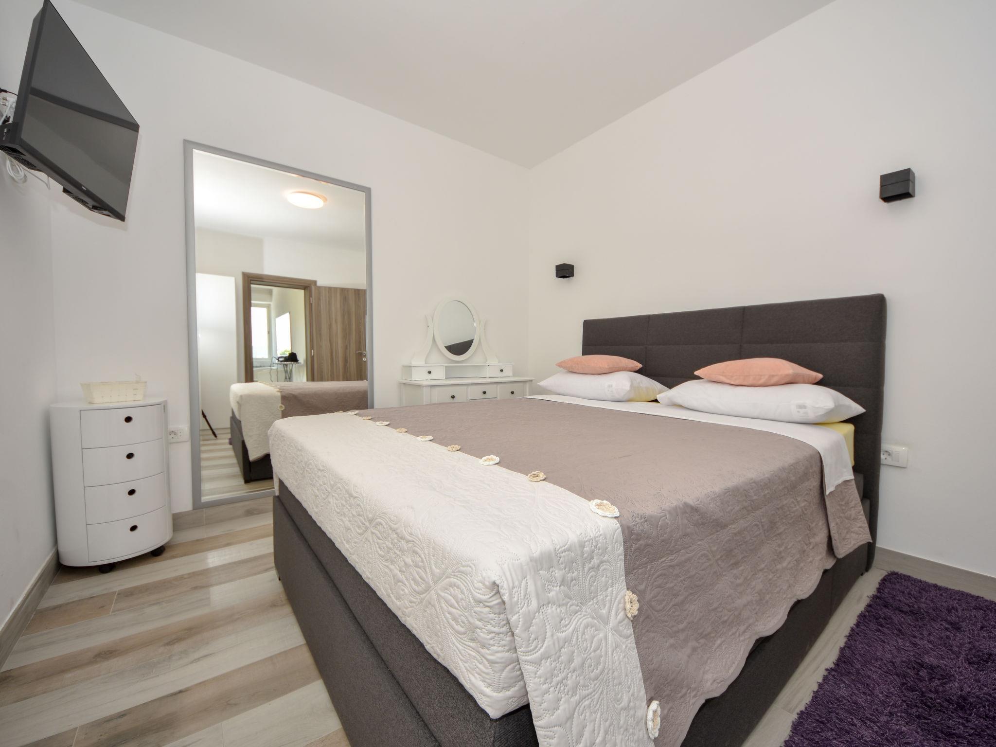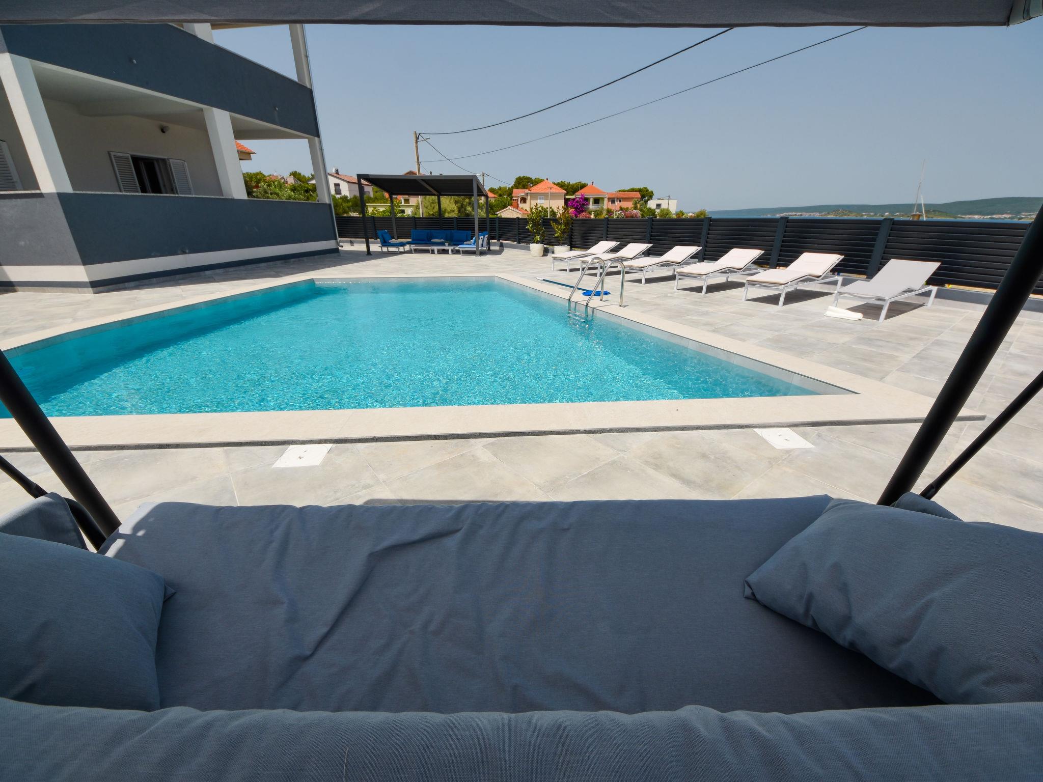 Modern apartment house "Franka". In the resort, in a quiet position, 10 m from the sea, 20 m from the beach. Private: property 400 m2, swimming pool (7 x 7 m, 49 m2, depth 145 cm, seasonal availability: 01.May. - 01.Oct.). Outdoor shower, pergola, garden furniture. In the house: internet access, air conditioning. Parking at the house. Shop 15 m, restaurant 20 m, bus stop 9.4 km. Tennis 300 m. In front of the house concrete beach with sandy sea-bottom.
