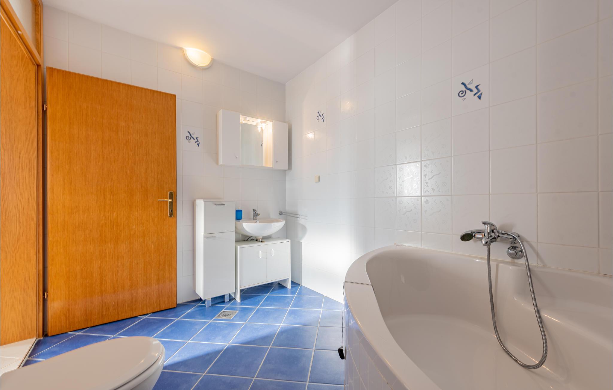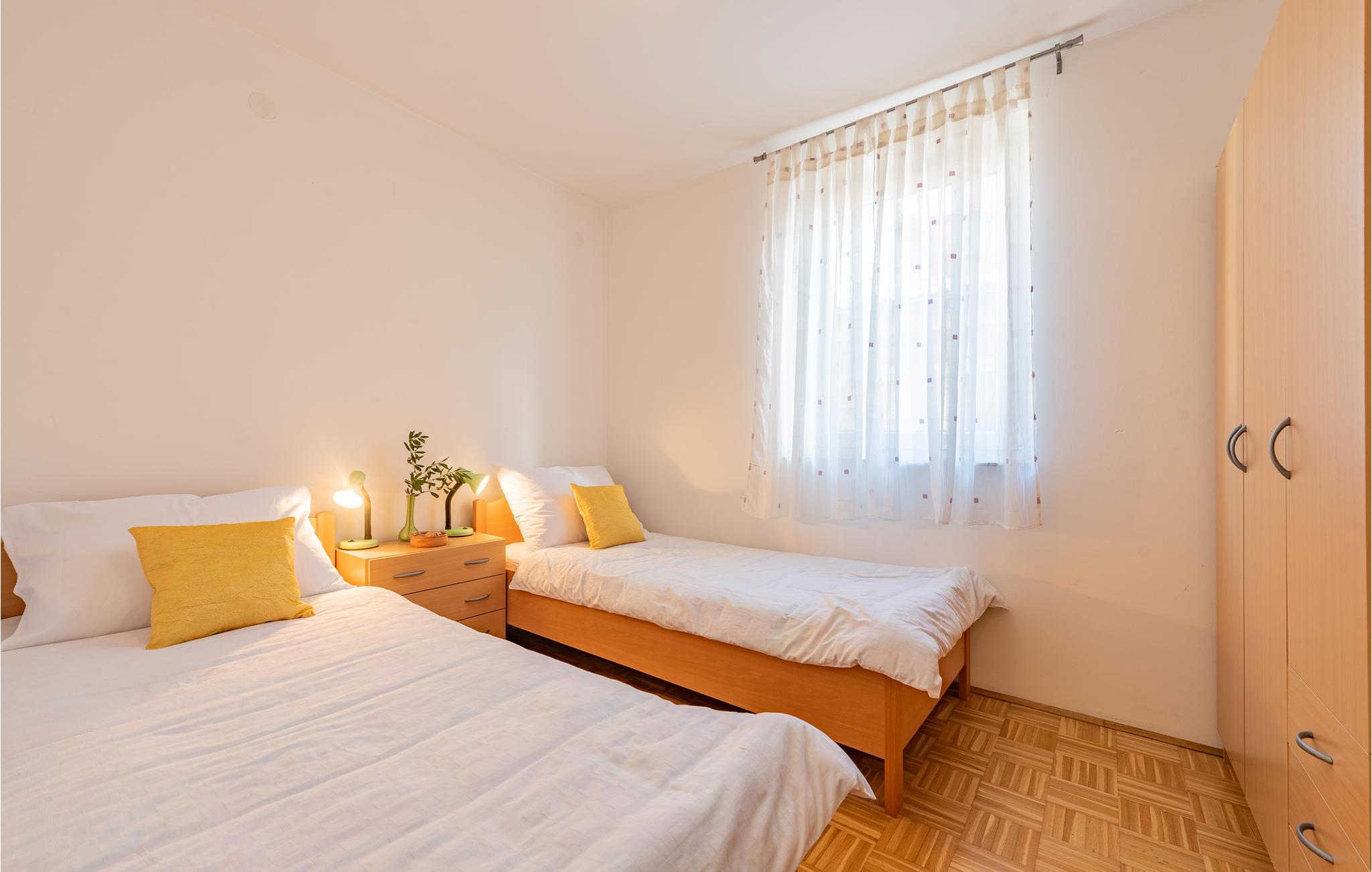 Denne skønne ferielejlighed er placeret i en moderne etageejendom. Her rykker I ind i en bolig, som emmer af stilfuld minimalisme og giver jer optimale rammer til at slappe af efter jeres ture rundt på øen Pag. I kan tilbringe aftenerne på den skyggefulde balkon og se de smukke solnedgange over havet. Her er der alt det, I skal bruge for at slappe af og have det rart, og I har desuden adgang til et fælles, lukket lokale, som I deler med husets øvrige gæster til socialt samvær og grillaftener.