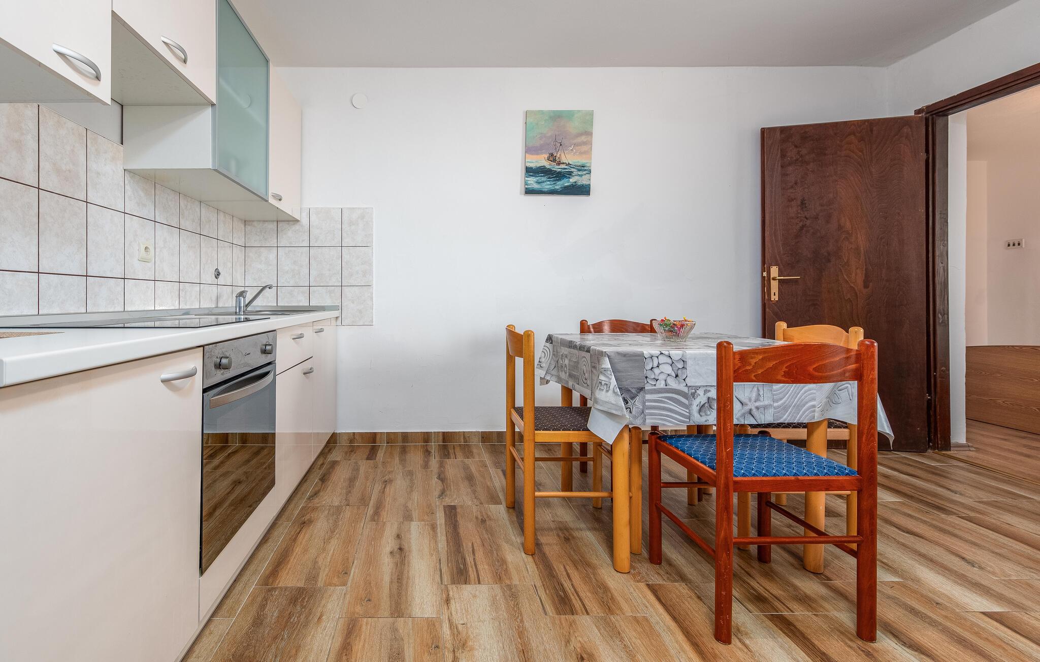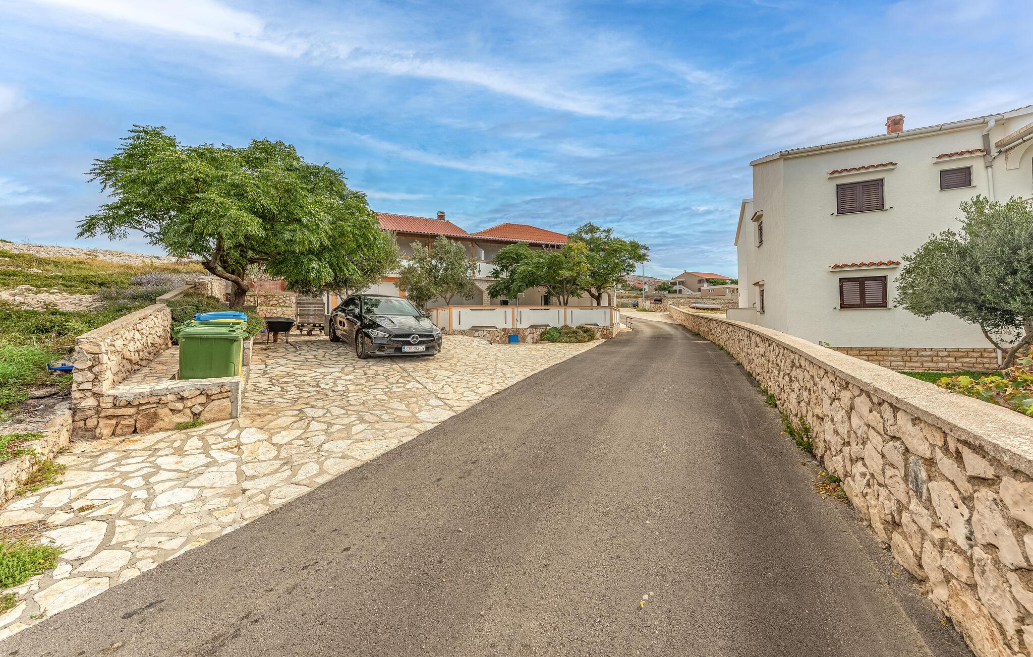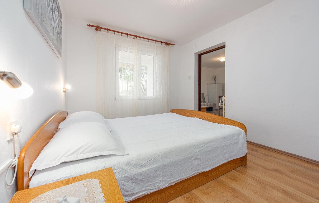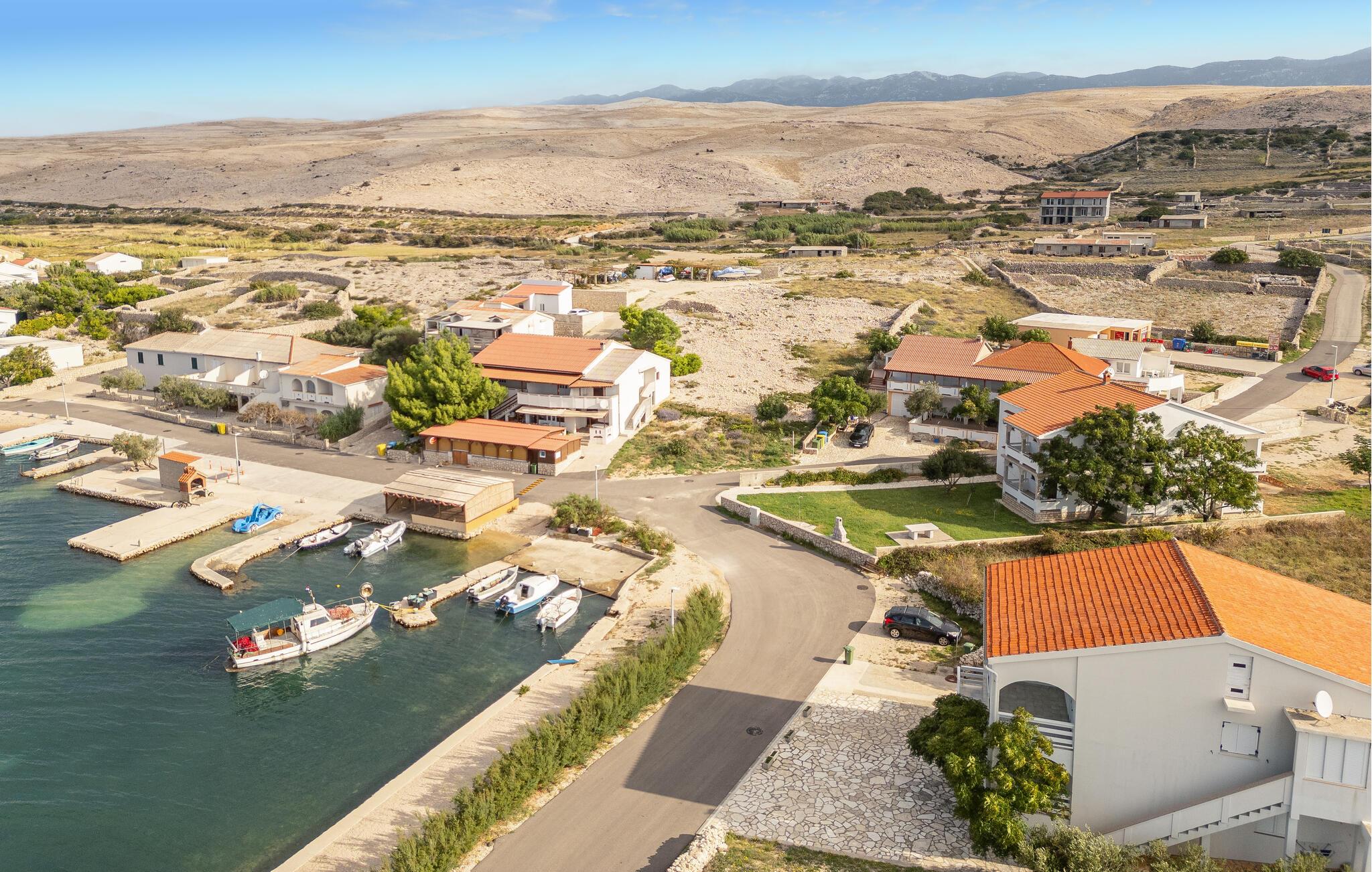 Dette smukke feriehus på øen Pag byder velkommen på en stor grund, i anden række fra vandet. Glæd dig til din ferie i Kustici og denne skønne lejlighed i et hus med flere ferielejligheder. Hvis du vil rejse med venner eller din udvidede familie, kan du bestille yderligere lejligheder. Lejlighederne i stueetagen og på første sal er veludstyrede og tilbyder dig alle de fornødenheder, du har brug for til din hvile. Føl dig hjemme i de lyse lokaler og indtag dine måltider på den overdækkede terrasse. Med havet i udsigt kan du gå til den nærliggende sten- og plateaustrand og hoppe i det azurblå vand og forfriske dig selv. Stedet Kustici, nordøst på øen Pag, er ideelt til en afslappende familieferie. Udforsk området, lej en båd og glæd dig til øens charmerende og varierede natur!
