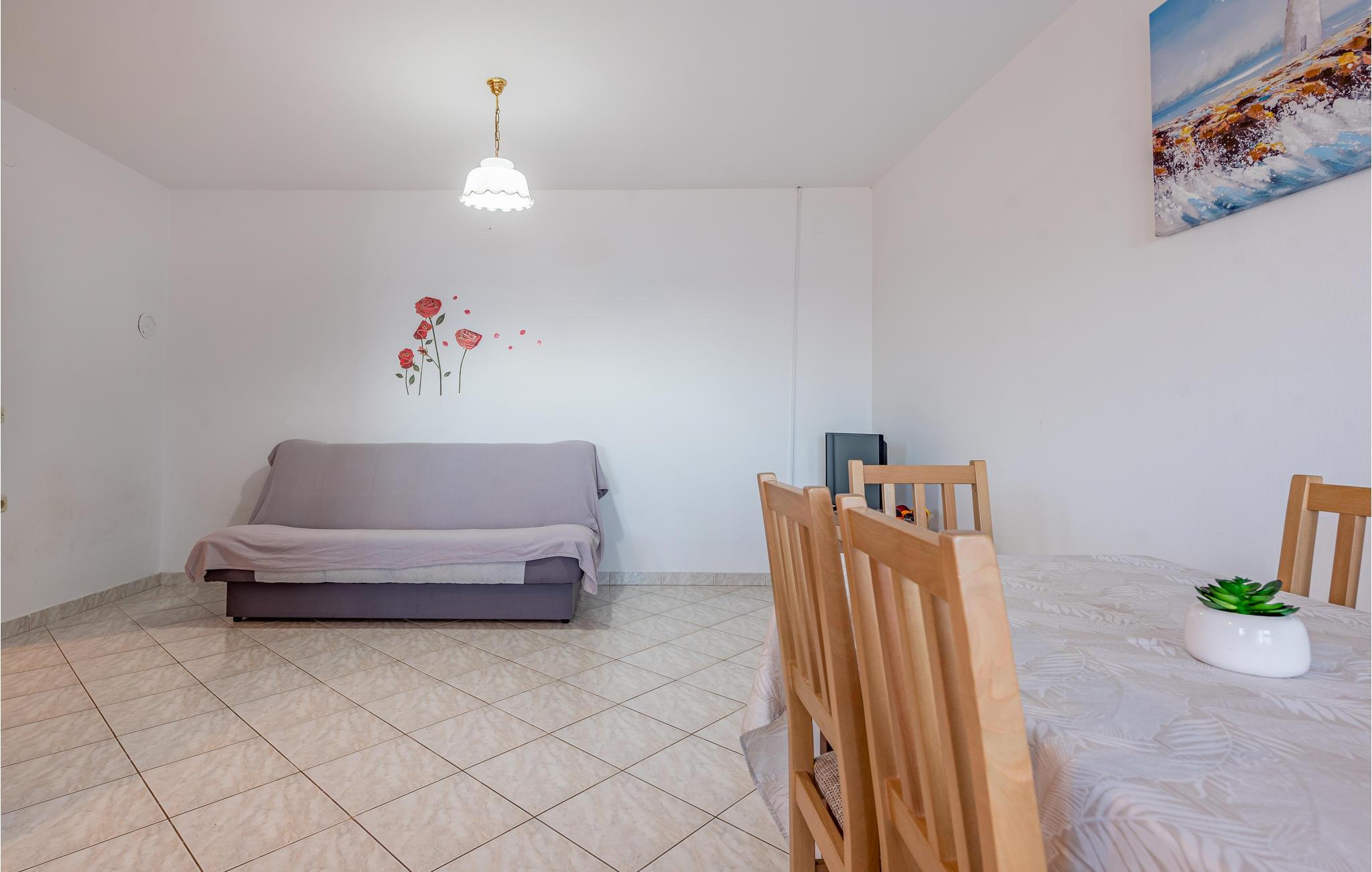 Glæd jer til jeres ferie i Kustici og denne funktionelle ferielejlighed i et hus med flere ferielejligheder. Hvis I ønsker at rejse med venner eller jeres udvidede familie, kan I bestille flere lejligheder i bygningen. Lejlighederne på første sal er behageligt udstyret og tilbyder jer alle de fornødenheder, I har brug for til at kunne slappe helt af uden bekymringer. Her vil I hurtigt føle jer hjemme i de lyse lokaler og spise jeres måltider sammen på den overdækkede altan.