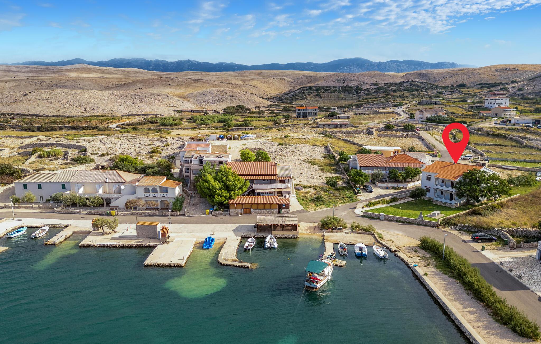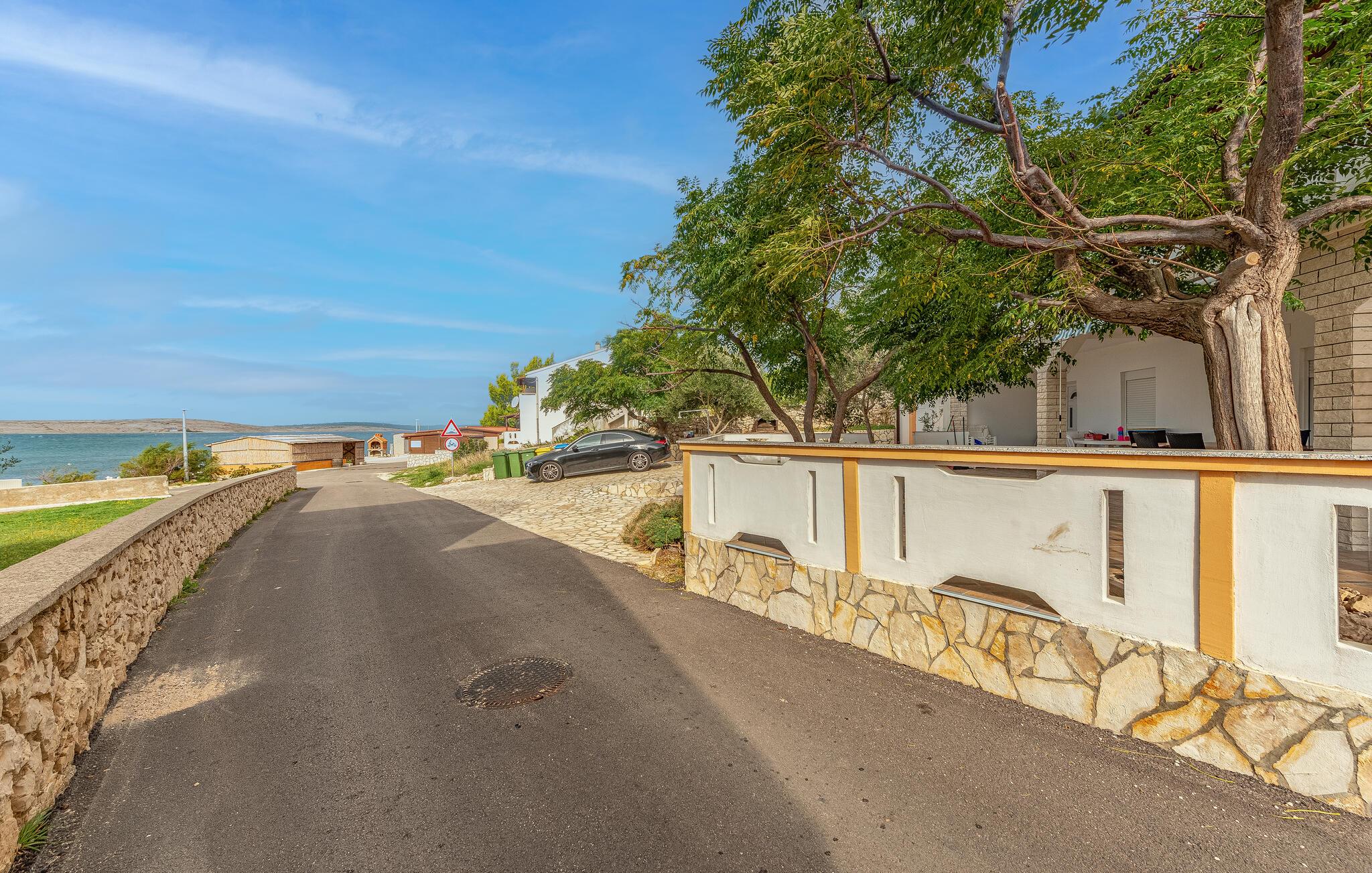 Skøn lejlighed på øen Pag får med stor grund i anden række til vandet.