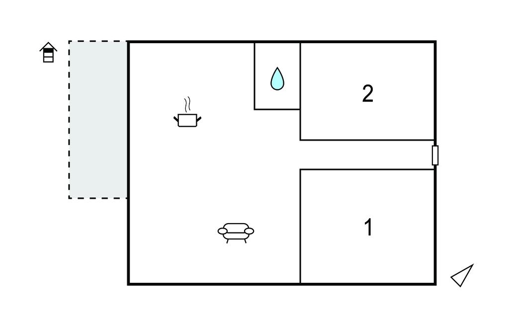 Opholdsstue/køkken 25m2 - 1 Soveplads. (Sofa, madras eller lignende).