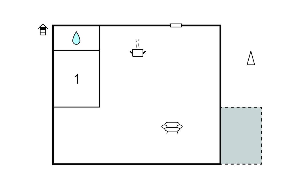 Komb. spisestue/køkken 20m2 - 1 Soveplads. (Sofa, madras eller lignende).