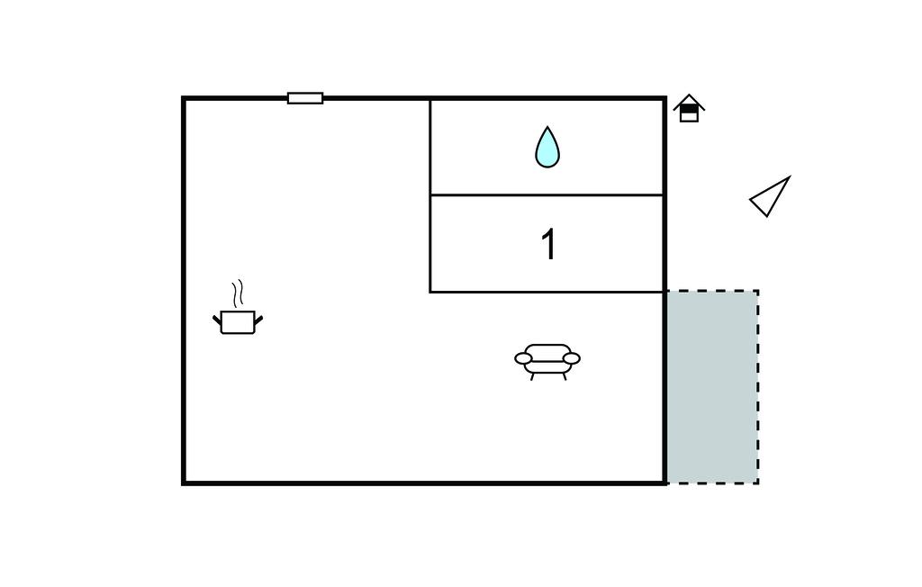 Opholdsstue/køkken 20m2 - 2 Sovepladser. (Sofa, madras eller lignende).