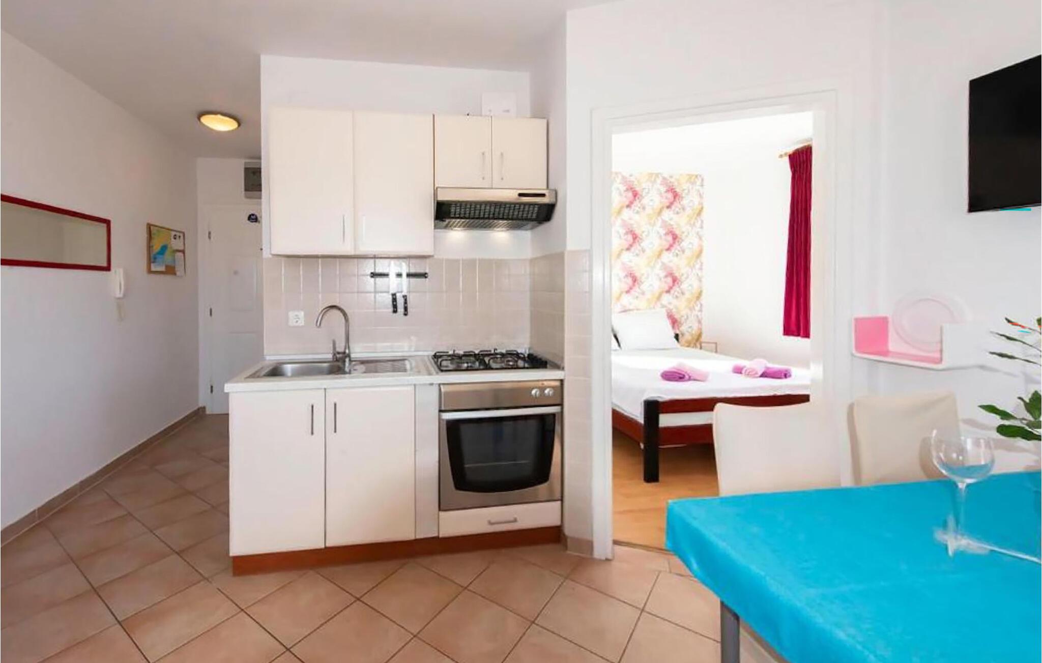 Denne praktiske lejlighed tilbyder alt, hvad I behøver for en ubekymret ferie. Bryg en aromatisk kaffe og nyd den med altandøren vidt åben. Tilbered lækre måltider i tekøkkenet og server dem med et godt glas vin.