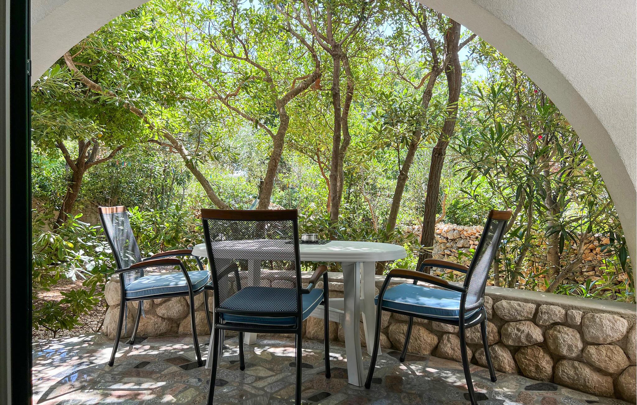 Nyd middelhavsatmosfæren på jeres terrasse med en morgenmad under åben himmel. Brug den fælles grill til at tilberede en lækker middag og snakke over et glas vin i de lune sommeraftener.