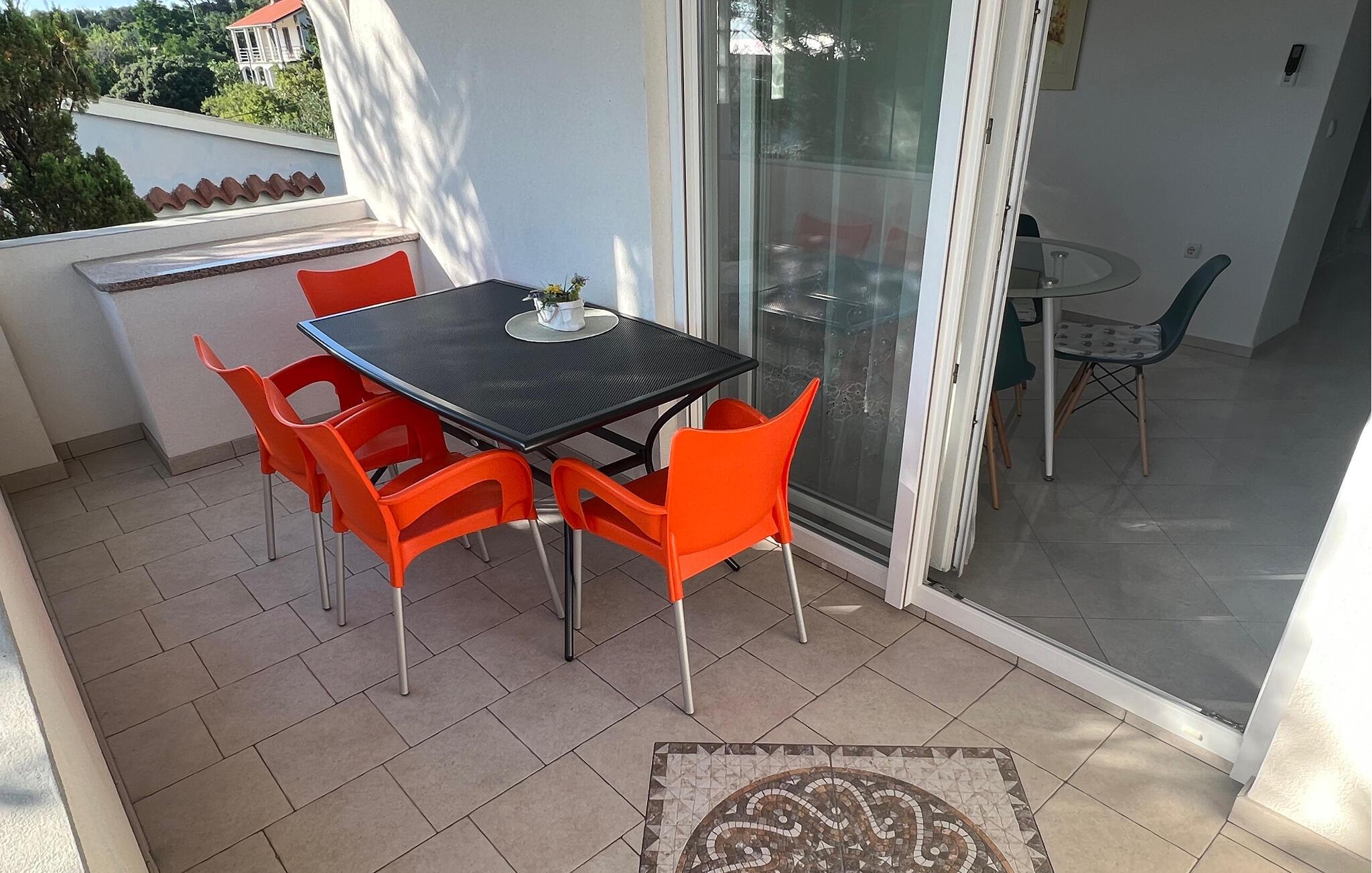 På jeres balkon kan I nyde middelhavsatmosfæren med morgenmad under åben himmel og udsigt over det nærliggende hav. Brug den fælles grill til at tilberede en lækker middag og snakke over et glas vin i de lune sommeraftener.