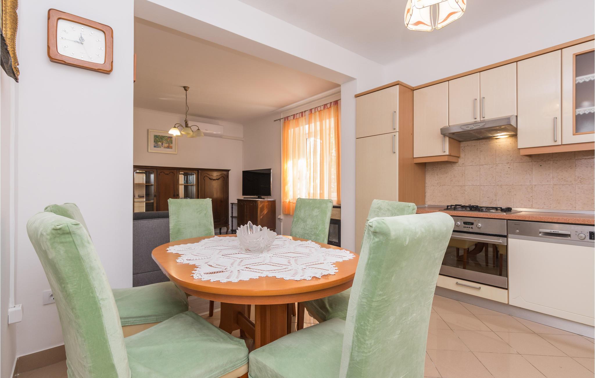 Hav en god tid her, møblerne og de venlige farver giver jer mulighed for at slappe af på ferien. Nyd måltiderne sammen i køkkenet eller på terrassen og krøl jer sammen på sofaen efter en fantastisk dag på havet eller en udflugt på øen. Se en film sammen og planlæg aktiviteterne til næste dag, for der er meget at opleve på Pag.