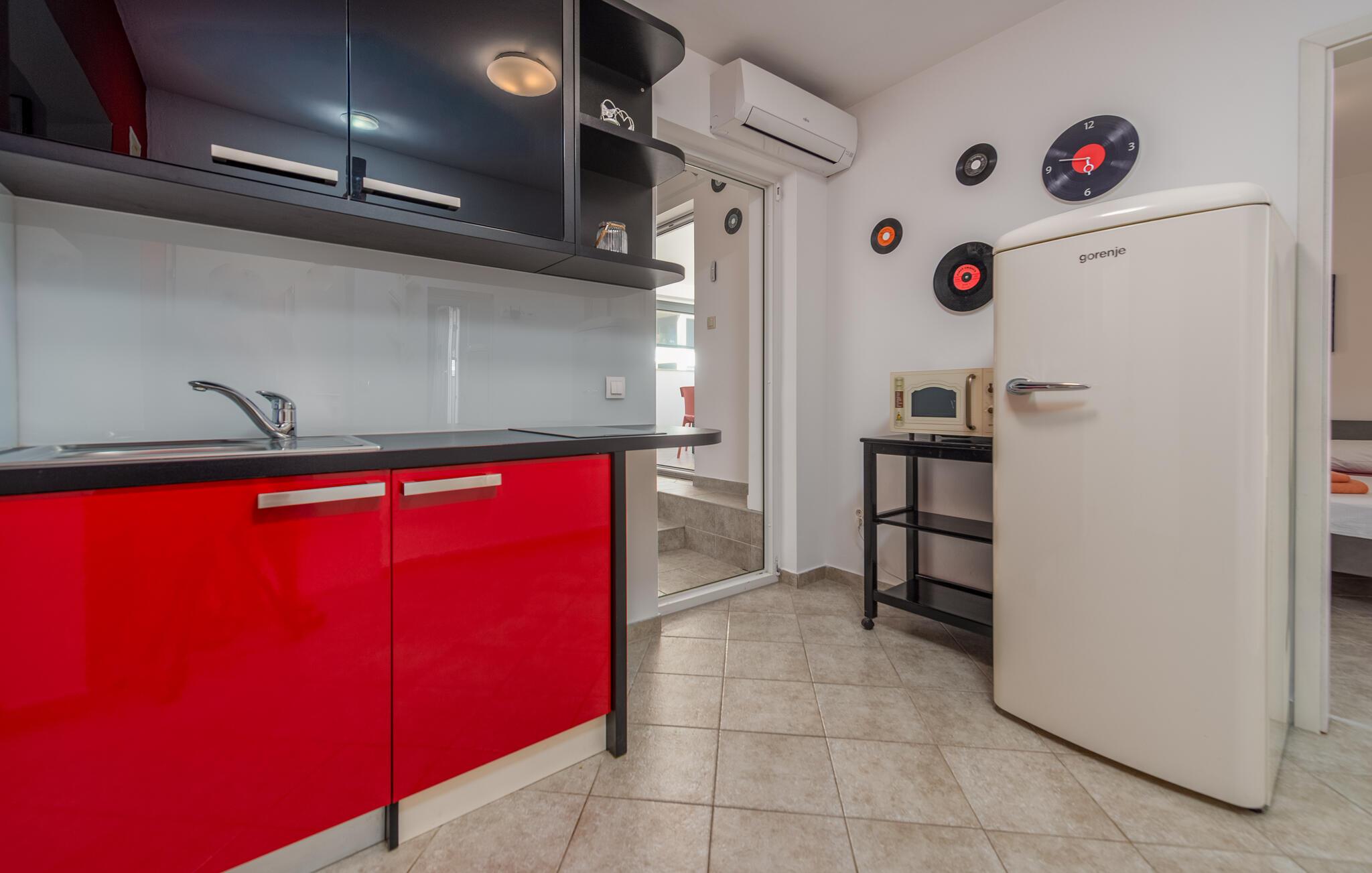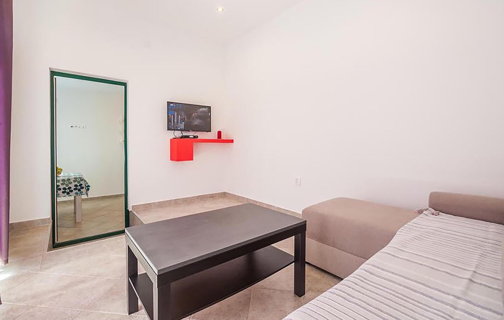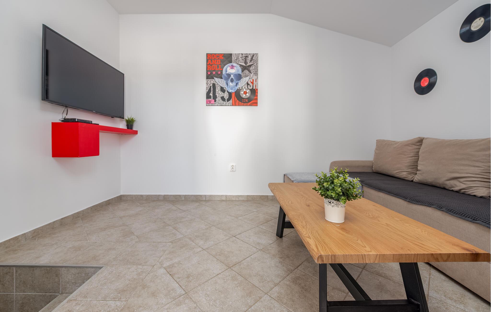 Denne moderne ferielejlighed byder jer velkommen med en venlig indretningsstil, der giver ideelle betingelser for en afslappende ferie. Nyd det åbne opholdsområde, hvor I kan lave mad sammen eller slappe af med en film på den komfortable sofa.