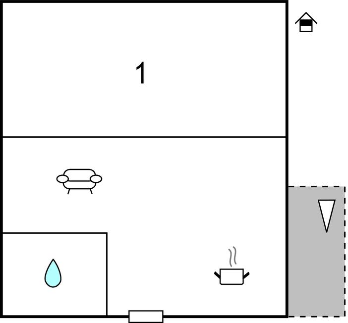 Opholdsstue/køkken 12m2 - 1 Soveplads. (Sofa, madras eller lignende).