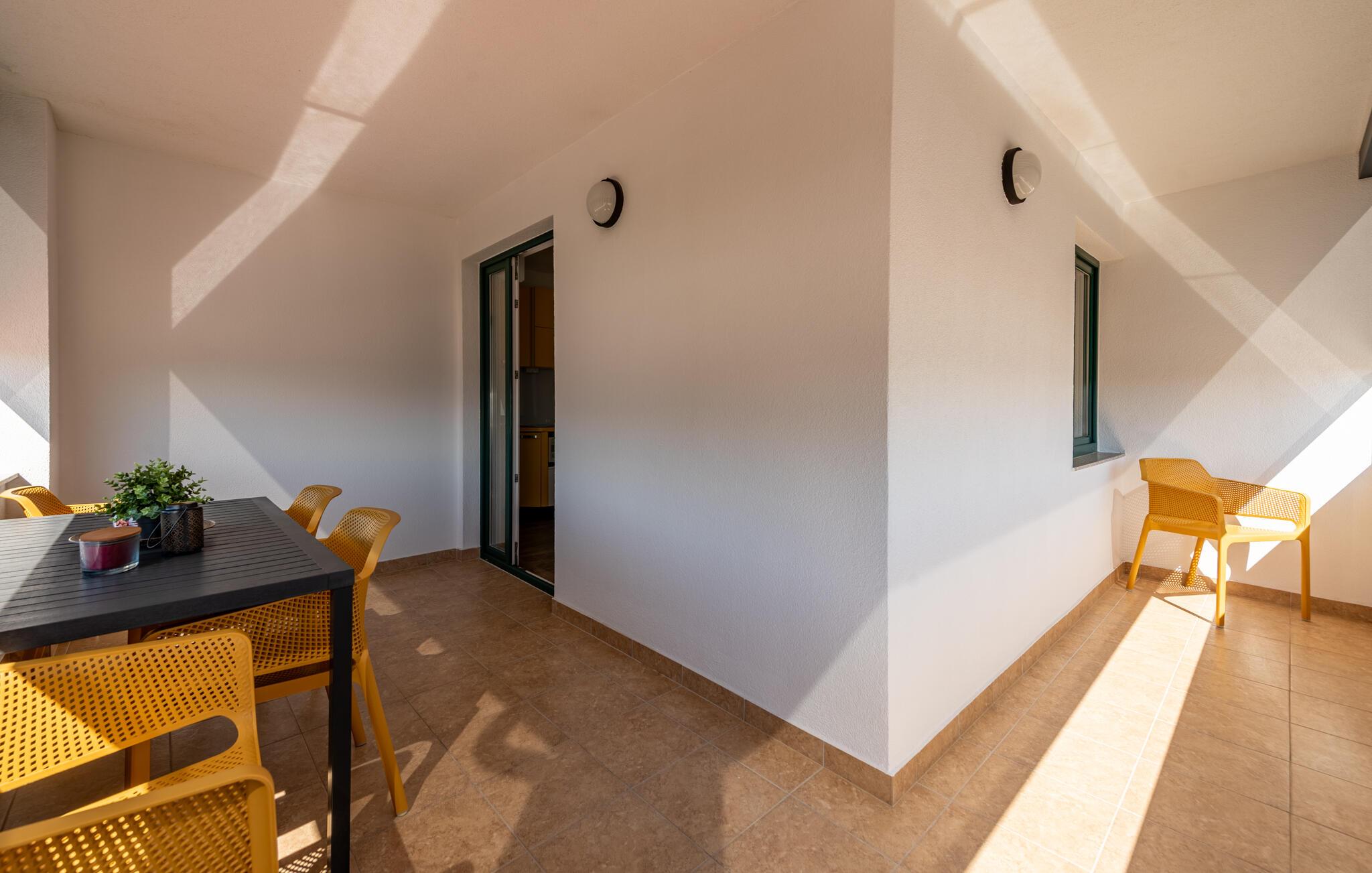 Begynd dagen med morgenmad på jeres solrige balkon, mens en blid havbrise sætter stemningen. Om aftenen kan I bruge den fælles grill til hyggelige stunder under stjernehimlen.