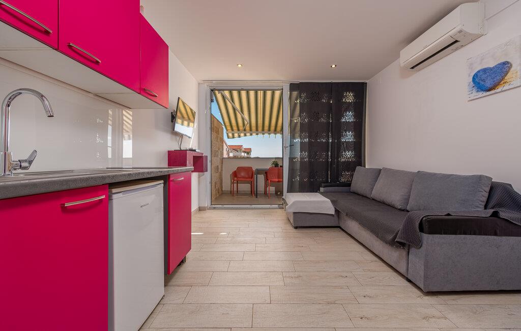 Denne moderne ferielejlighed byder jer velkommen med en venlig og indbydende indretning, der skaber de perfekte rammer for afslappende feriedage. Nyd den åbne opholdsstue, hvor I kan lave mad sammen eller slappe af med en film på den hyggelige sofa.