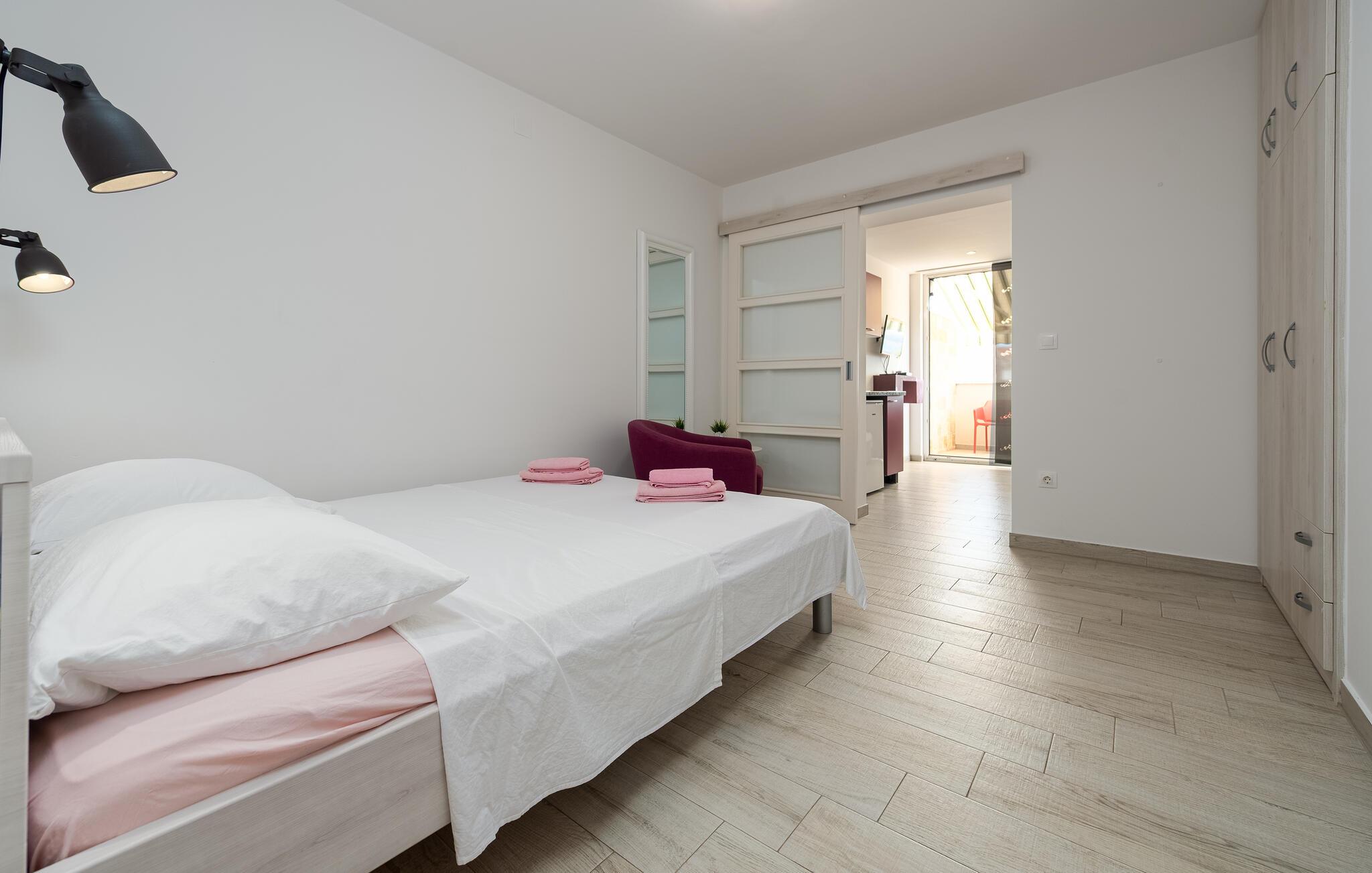 Glæd jer til en strandferie for to i denne lyse ferielejlighed.