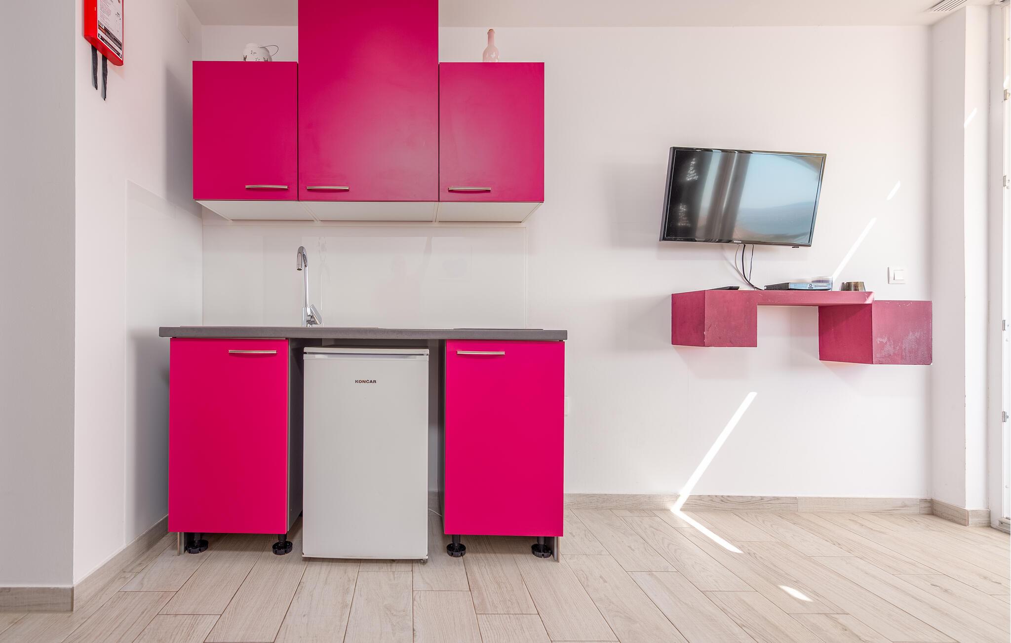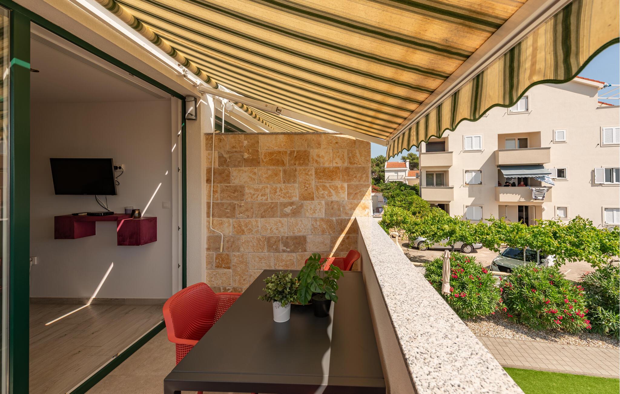 Begynd dagen med morgenmad på jeres solrige balkon, mens en blid havbrise sætter stemningen. Om aftenen kan I bruge den fælles grill til hyggelige stunder under stjernehimlen.