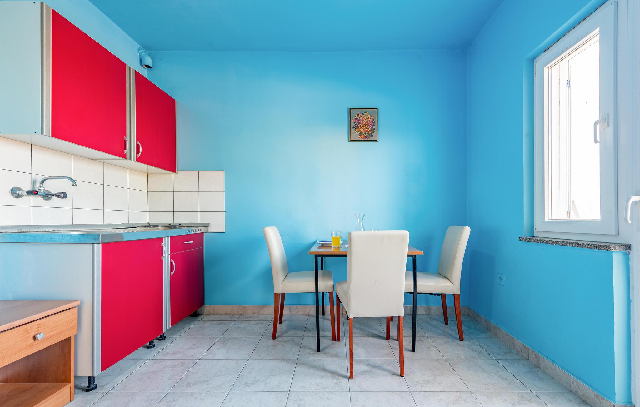 kun nogle få skridt fra den nærmeste sandstrand venter denne praktiske indkvartering på jer til en ukompliceret strandferie med god mad og naturskønne omgivelser. Den lyse ferielejlighed er kompakt, funktionel og tilbyder alt hvad I behøver for en afslappende ferie. Tilbered lette måltider og snacks til jeres udflugter i det lille tekøkken. Bagefter kan I slappe af på sofaen og lade tankerne vandre.