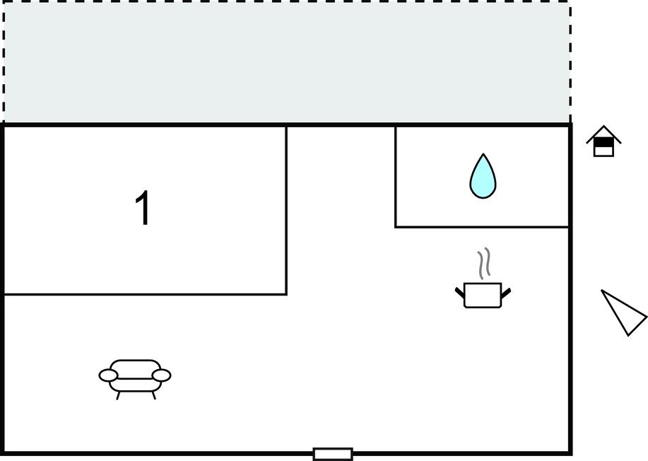 Opholdsstue/køkken 14m2 - 1 Soveplads. (Sofa, madras eller lignende).