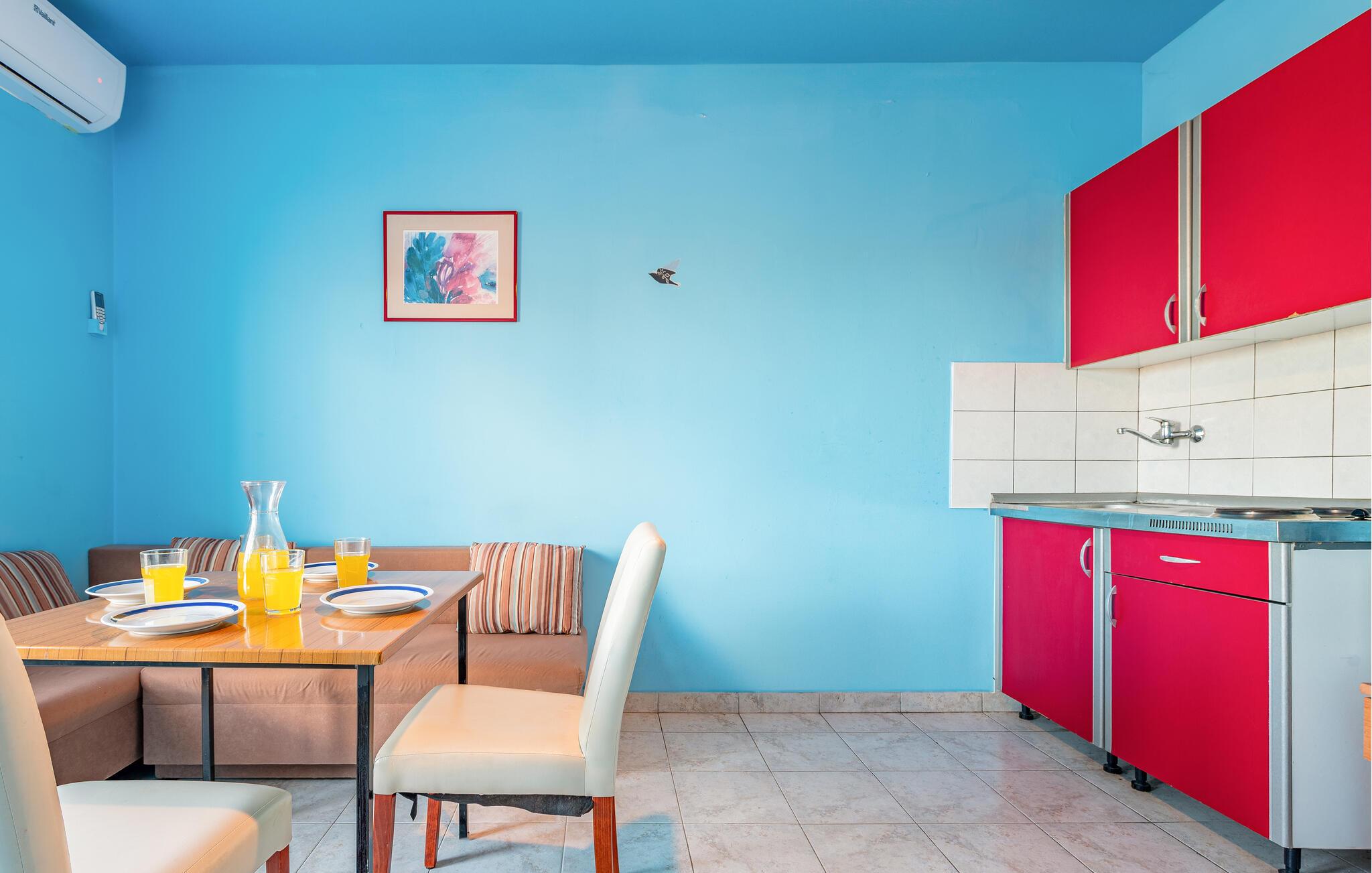 kun nogle få skridt fra den nærmeste sandstrand venter denne praktiske indkvartering på jer til en ukompliceret strandferie med god mad og naturskønne omgivelser. Den lyse ferielejlighed er kompakt, funktionel og tilbyder alt hvad I behøver for en afslappende ferie. Tilbered lette måltider og snacks til jeres udflugter i det lille tekøkken. Bagefter kan I slappe af på sofaen og lade tankerne vandre.