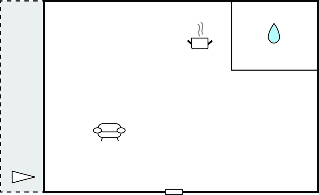 Opholdsstue/køkken 28m2 - 1 Soveplads. (Enkeltseng(e)). 2 Sovepladser. (Dobbeltseng(e)).