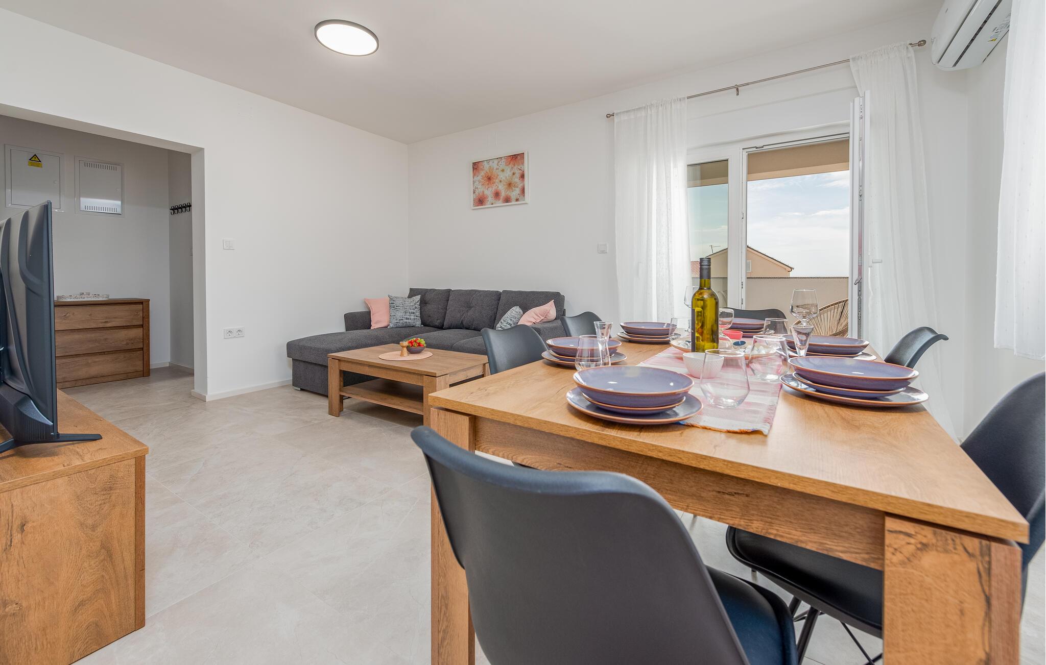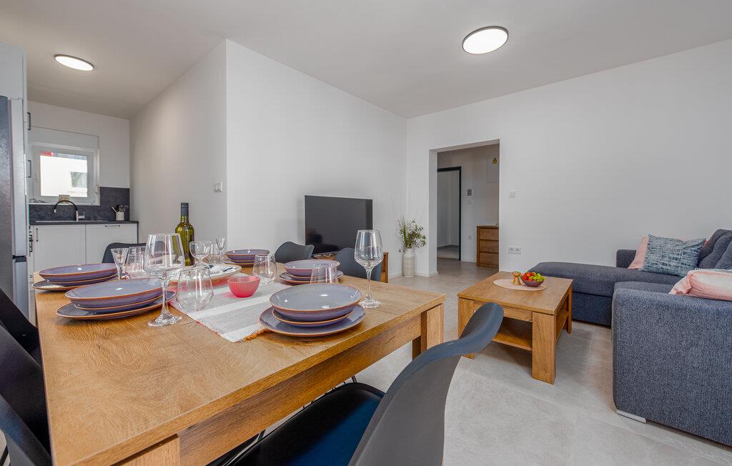 Den moderne møblerede lejlighed byder jer velkommen i ideel beliggenhed tæt på stranden og er perfekt til en ferie med skønne stunder ved vandet. Nyd tiden sammen, og tilbring hyggelige aftener i den indbydende stue på den behagelige sofa, måske med en god film.
